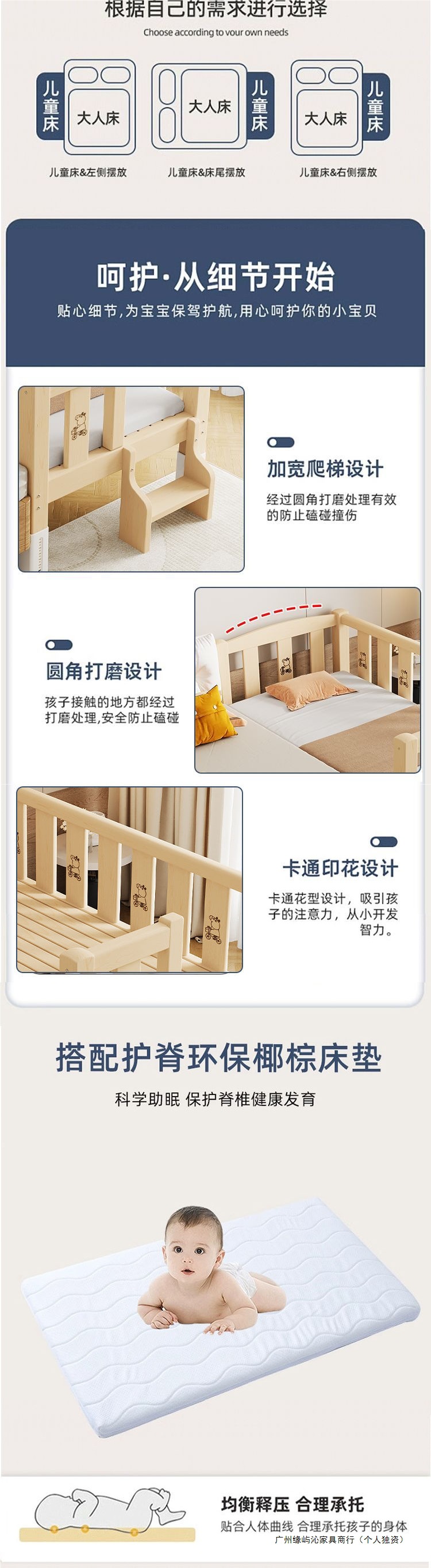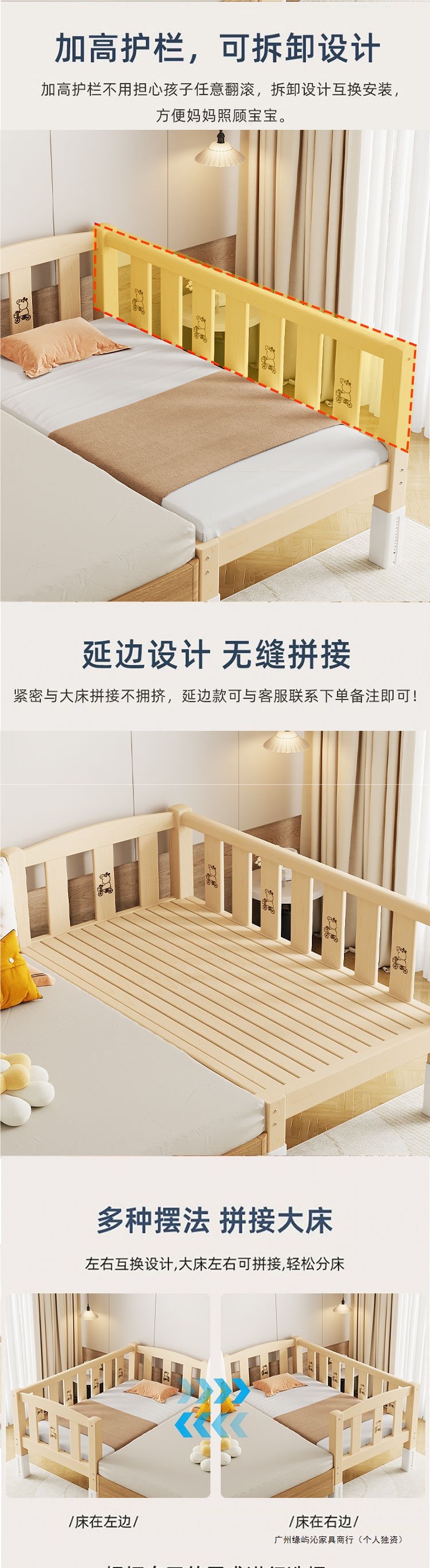 商品名称:实木婴儿加宽拼接床女孩单人床边儿童大床加护栏宝宝男孩宝宝小床