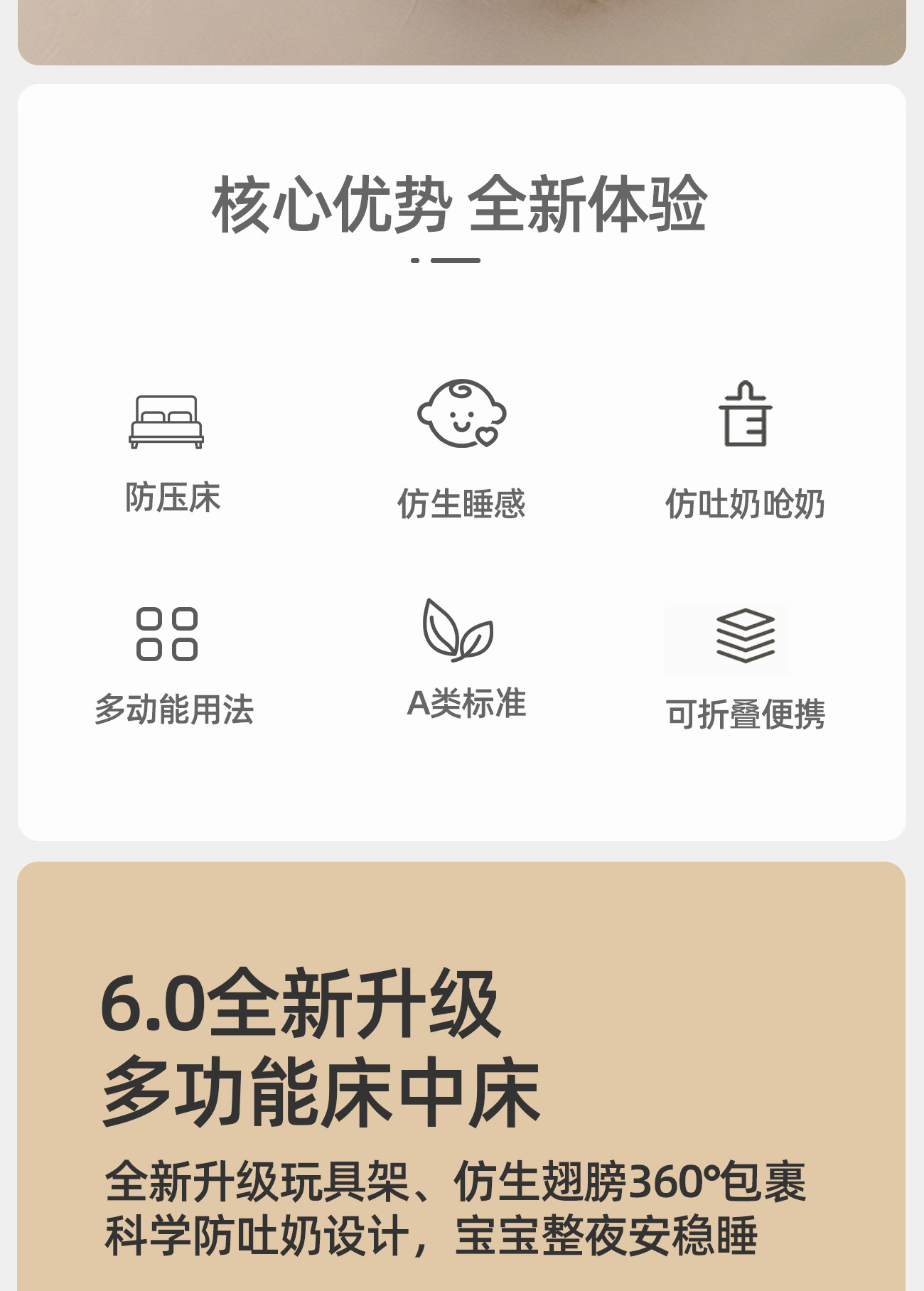 商品名称:婴儿床中床防吐奶安抚子宫斜坡新生儿仿生睡床防惊跳可移动婴儿床