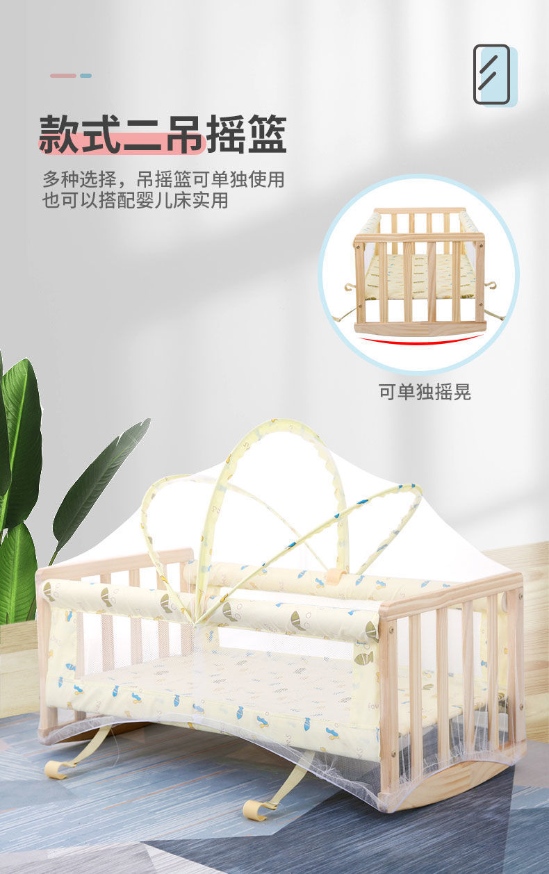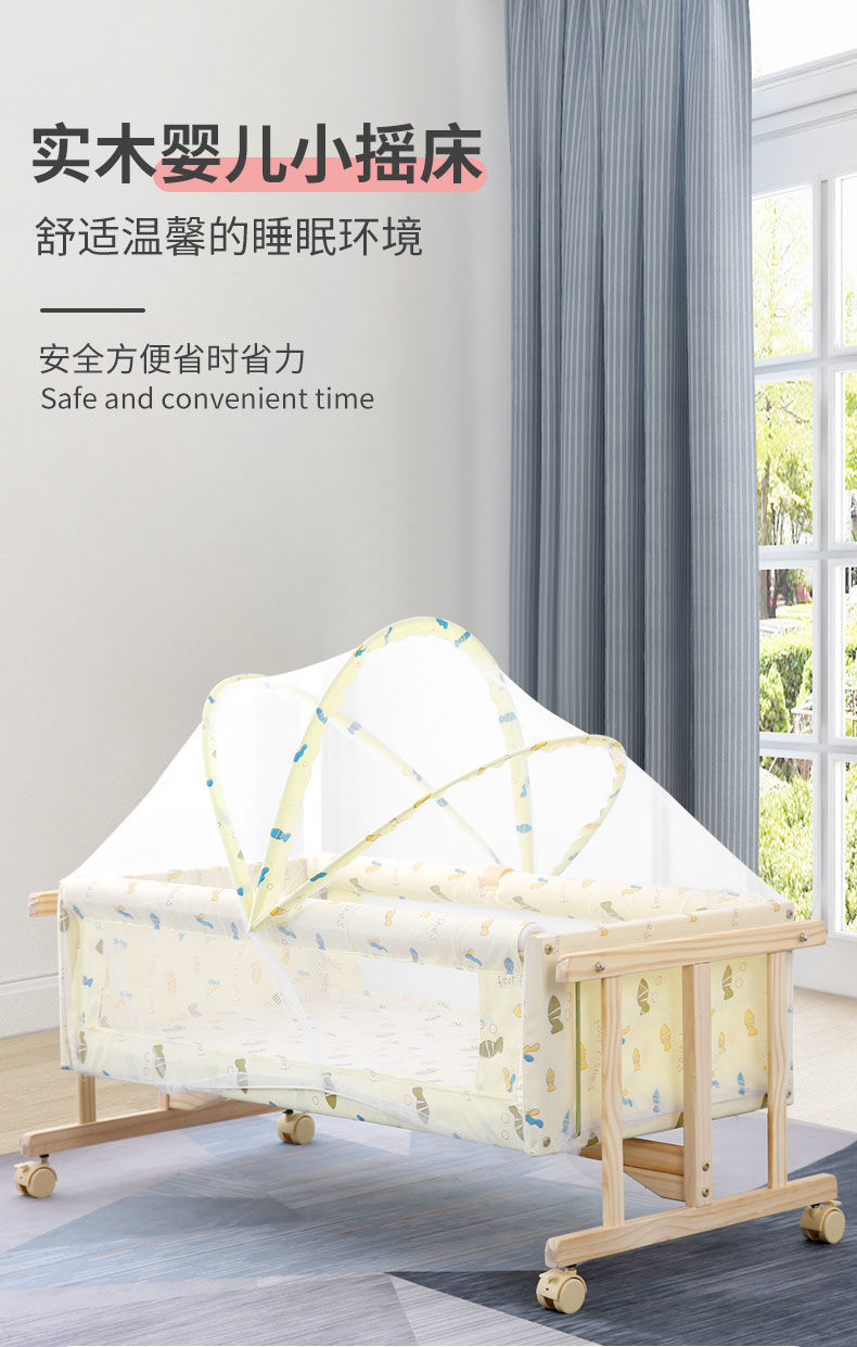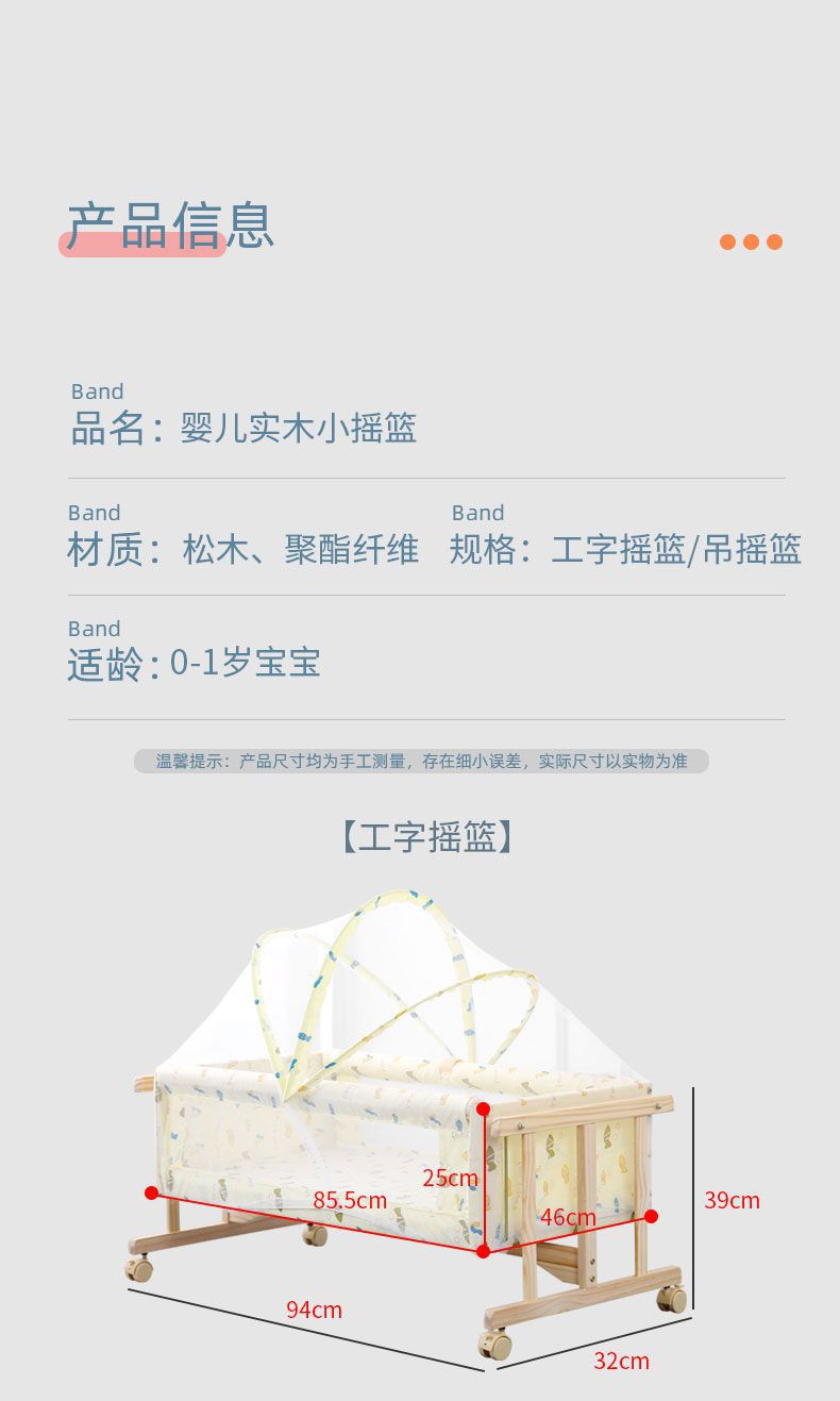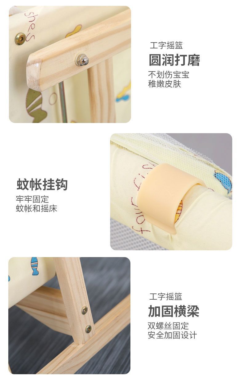 商品名称:婴儿床实木摇篮床BB床宝宝床小摇篮工字摇篮送蚊帐 平行摇