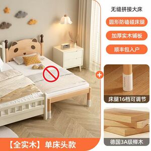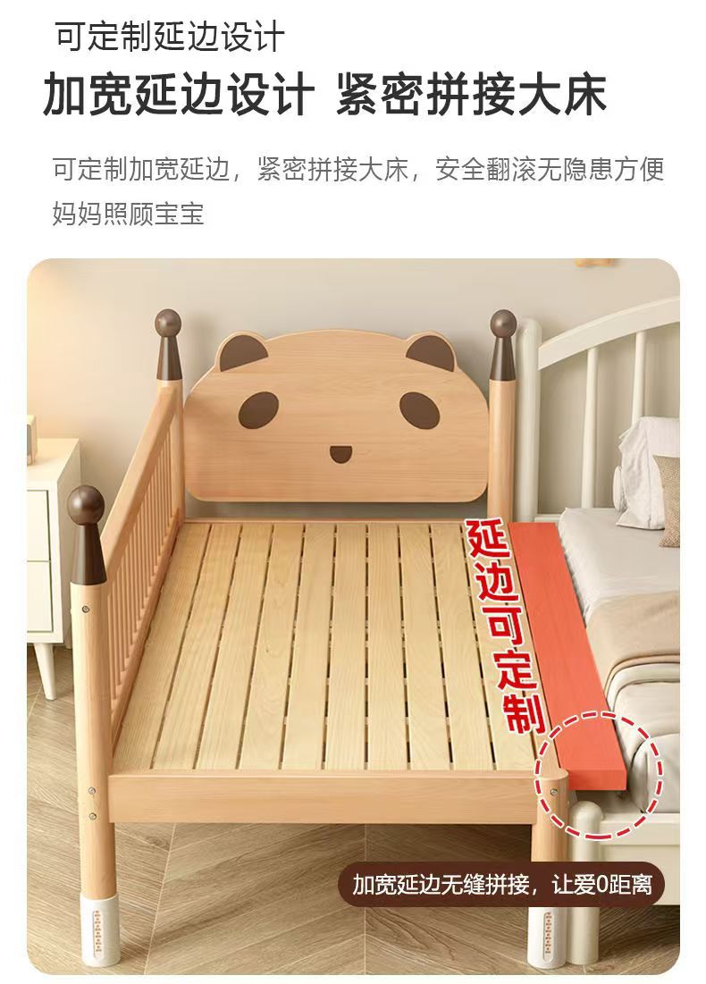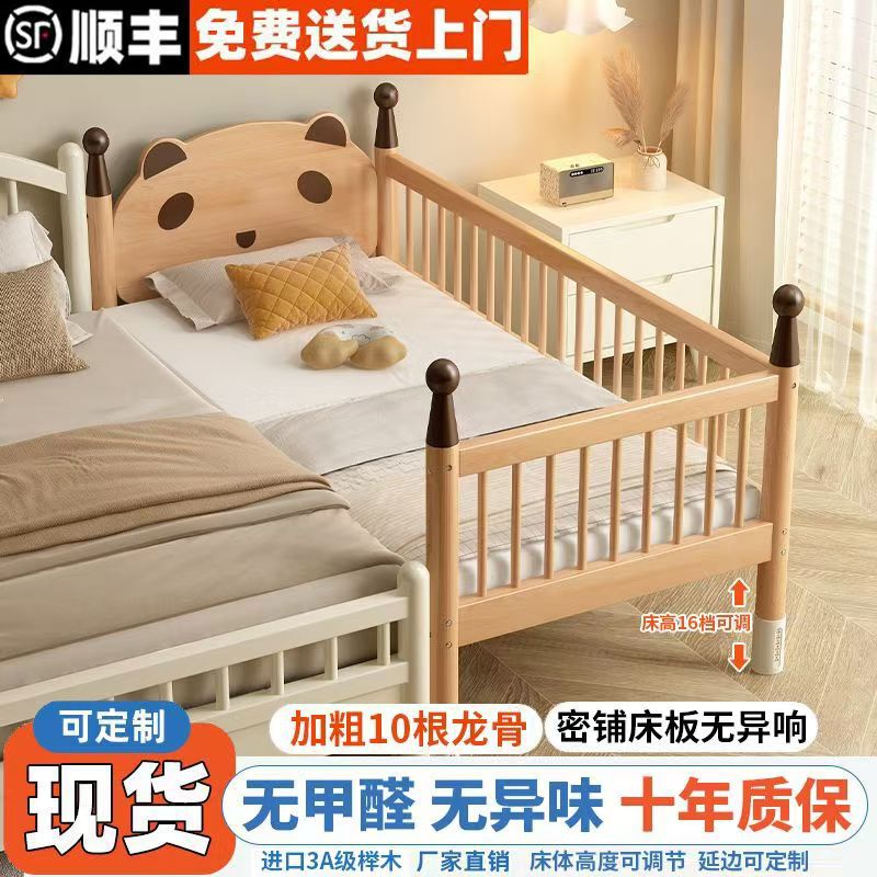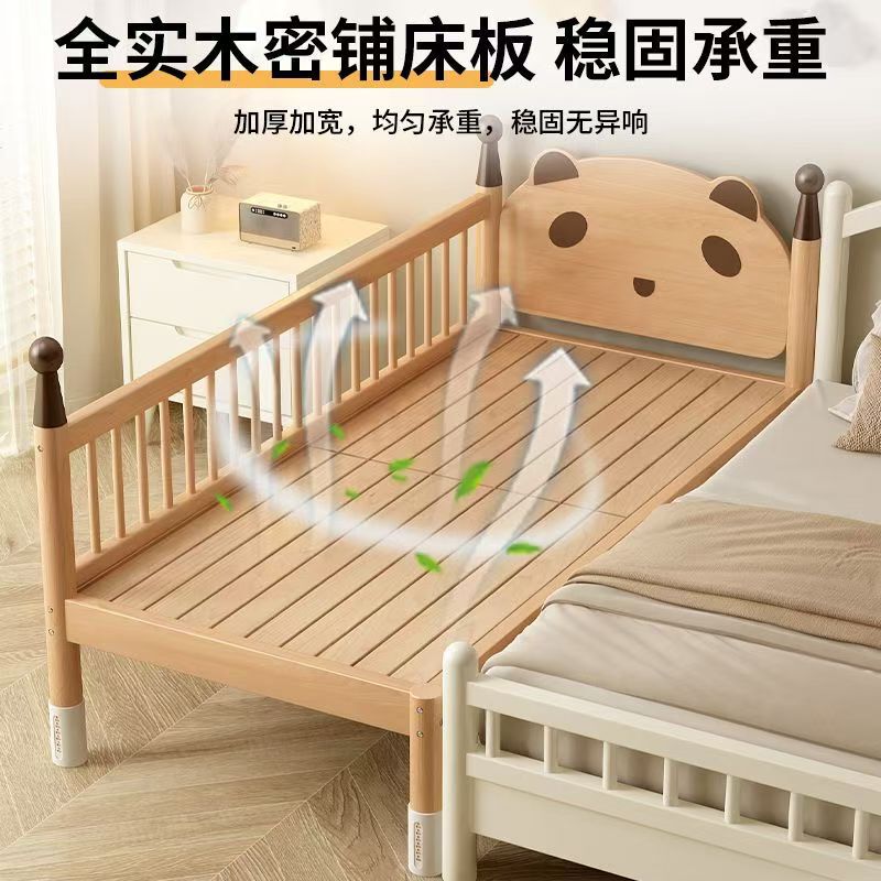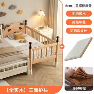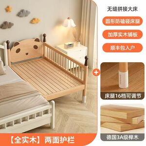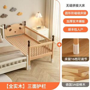榉木儿童床男孩女孩公主床带护栏加宽床边小床单人床婴儿拼接大床
