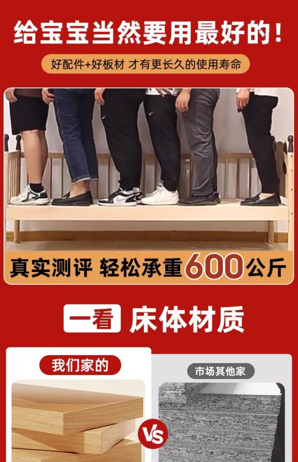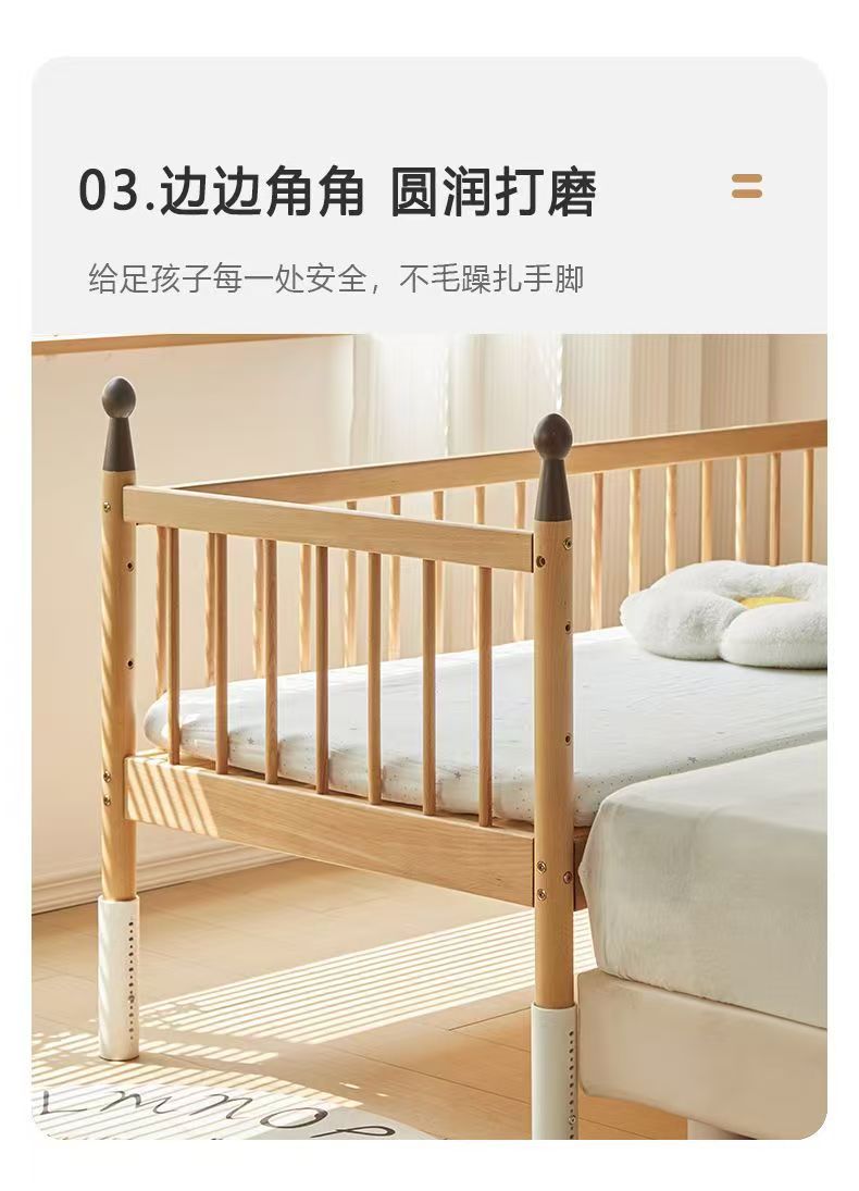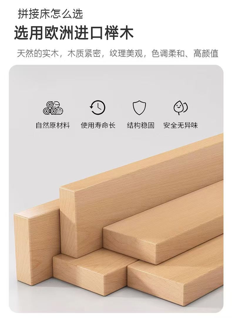 商品名称:榉木儿童床男孩女孩公主床带护栏加宽床边小床单人床婴儿拼接大床