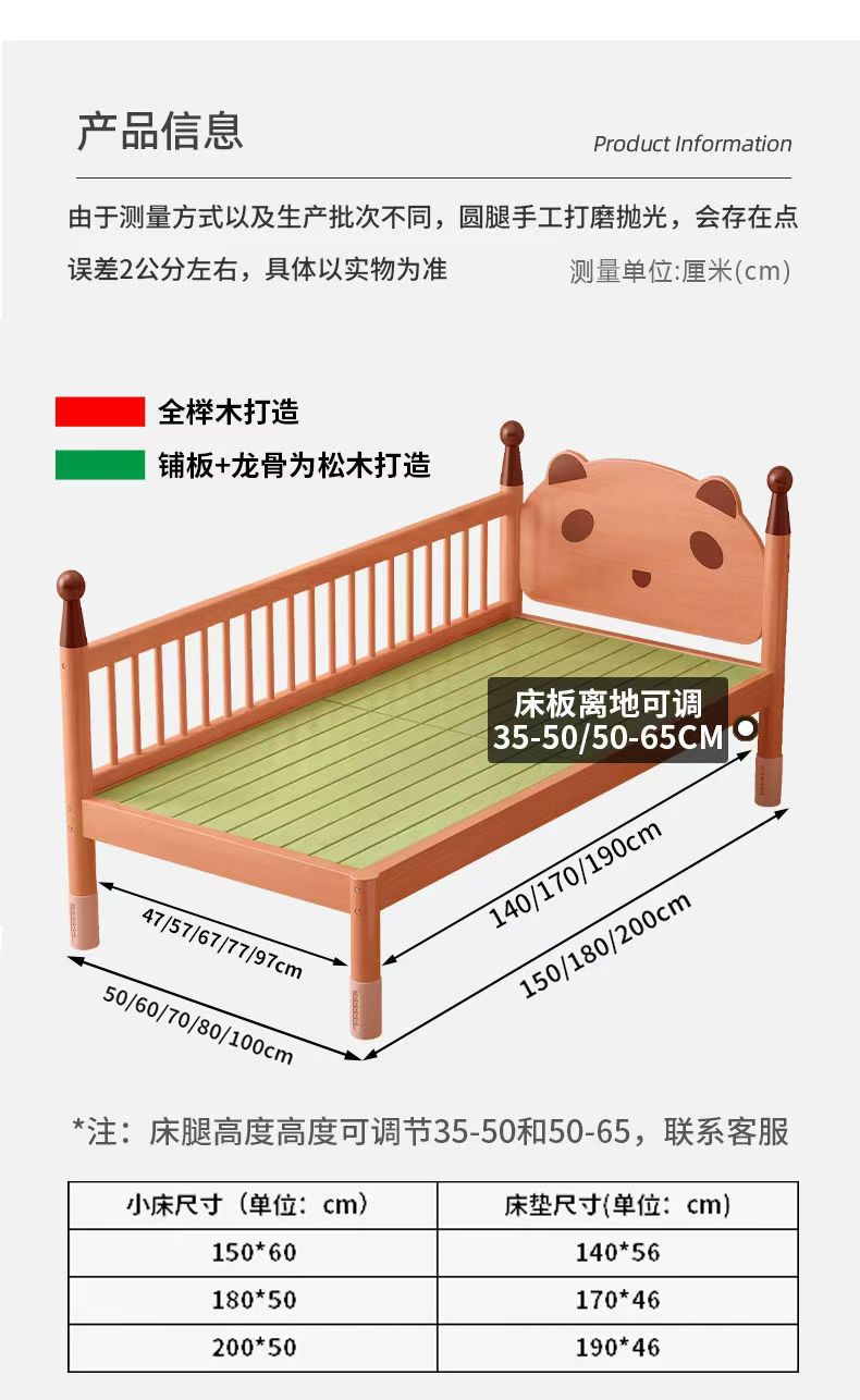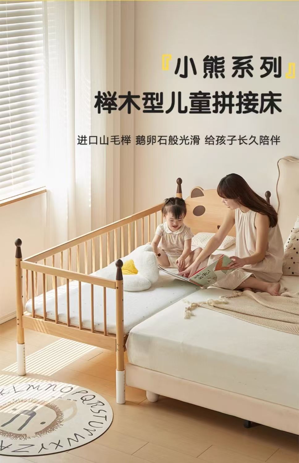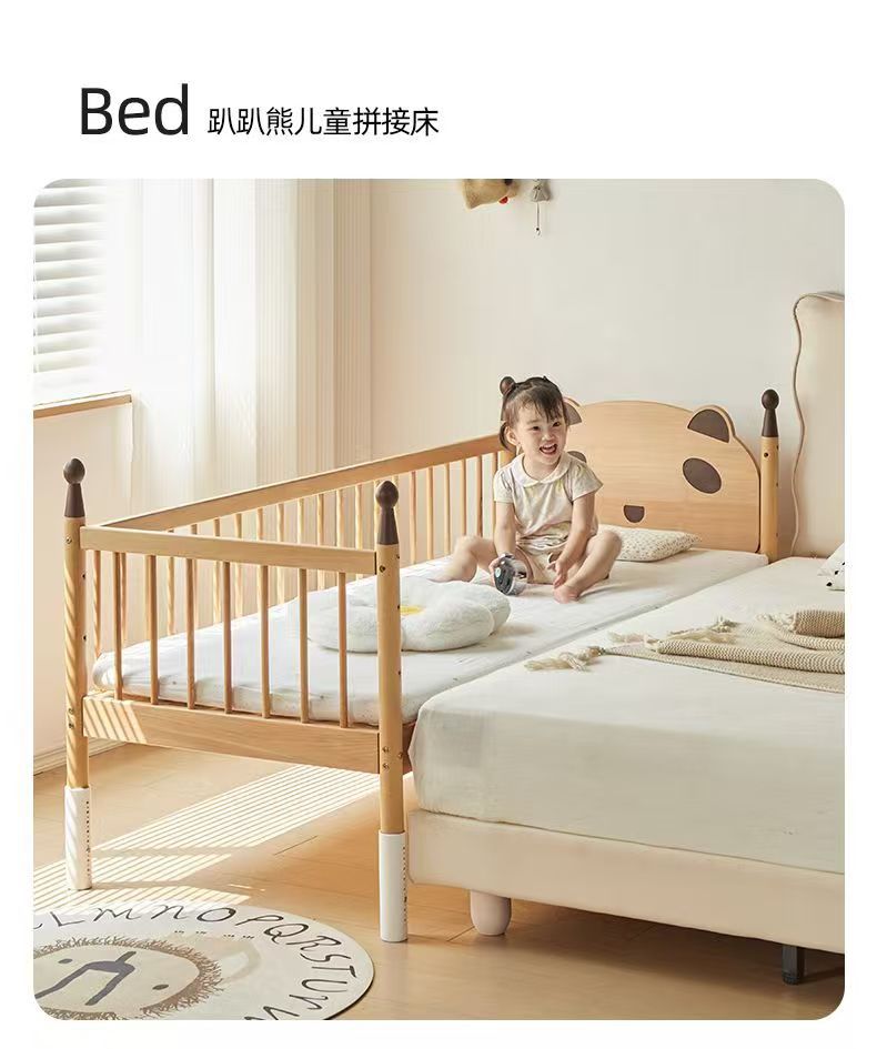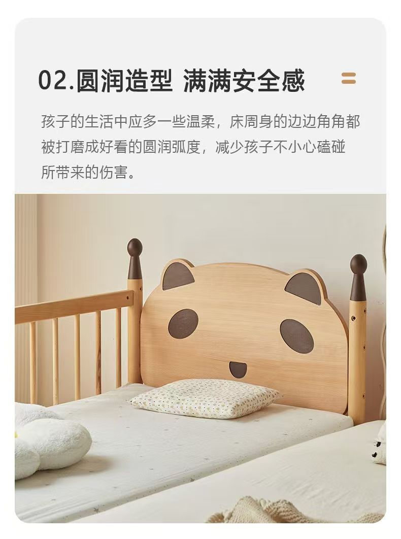 爆款[榉木]小熊款裸床+贴心三面护栏