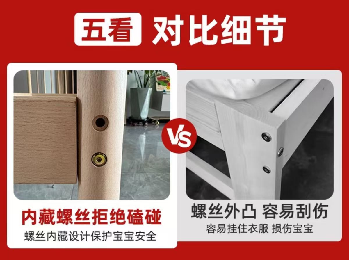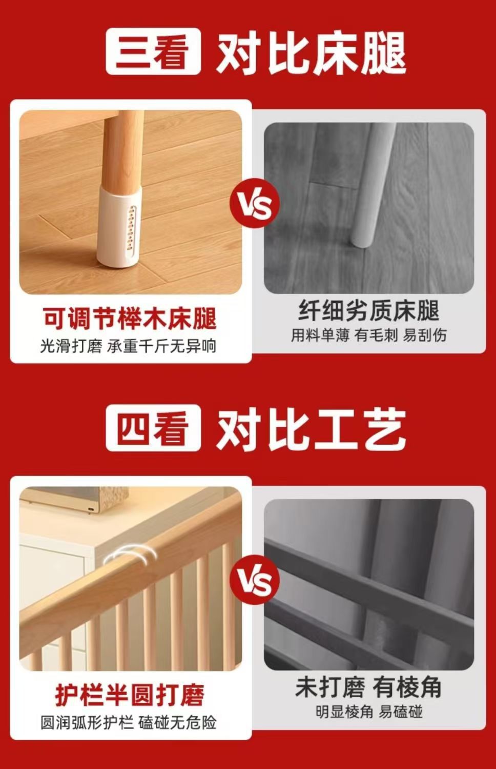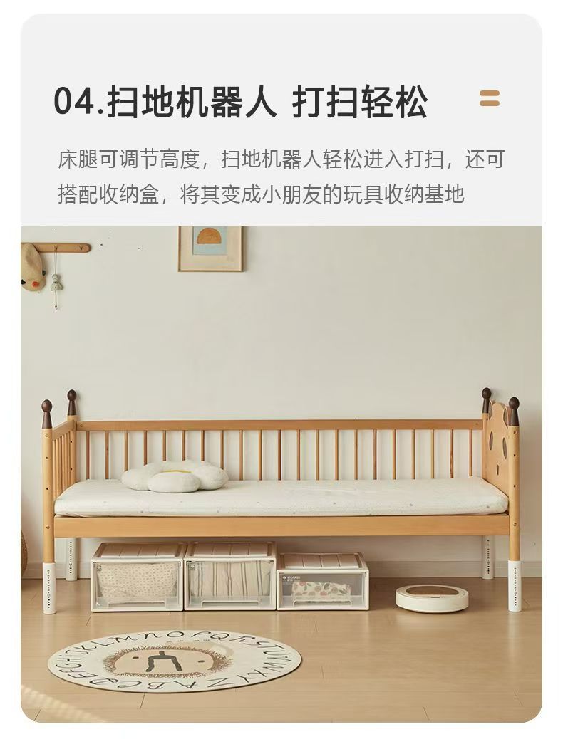 爆款[榉木]小熊款裸床+贴心三面护栏