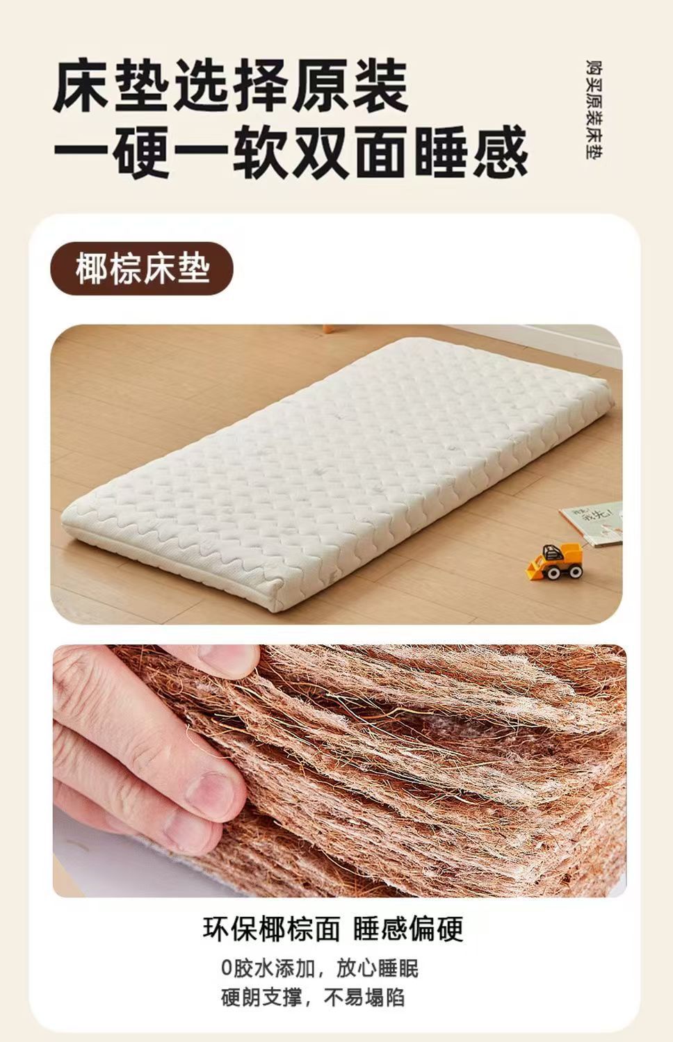 升级[榉木]小熊两面护栏+6cm可拆椰棕床垫