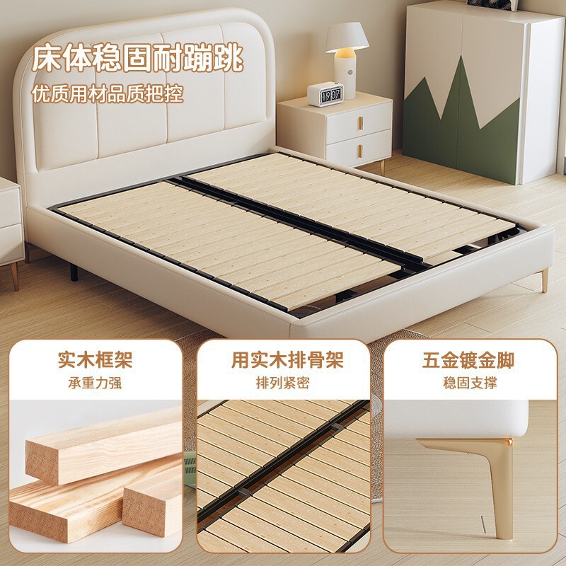 头层牛皮/升级实木排骨架床