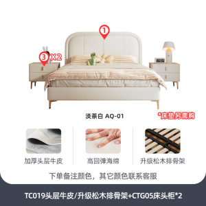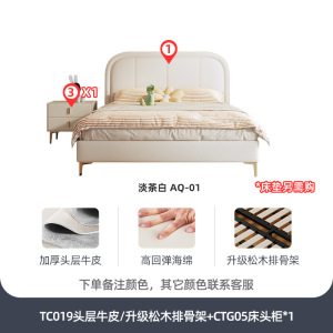 头层牛皮+床头柜*1/升级实木排骨架床