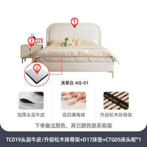 头层牛皮+D17床垫/升级实木排骨架床