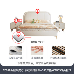 头层牛皮+D17床垫+柜*2/升级实木排骨架床