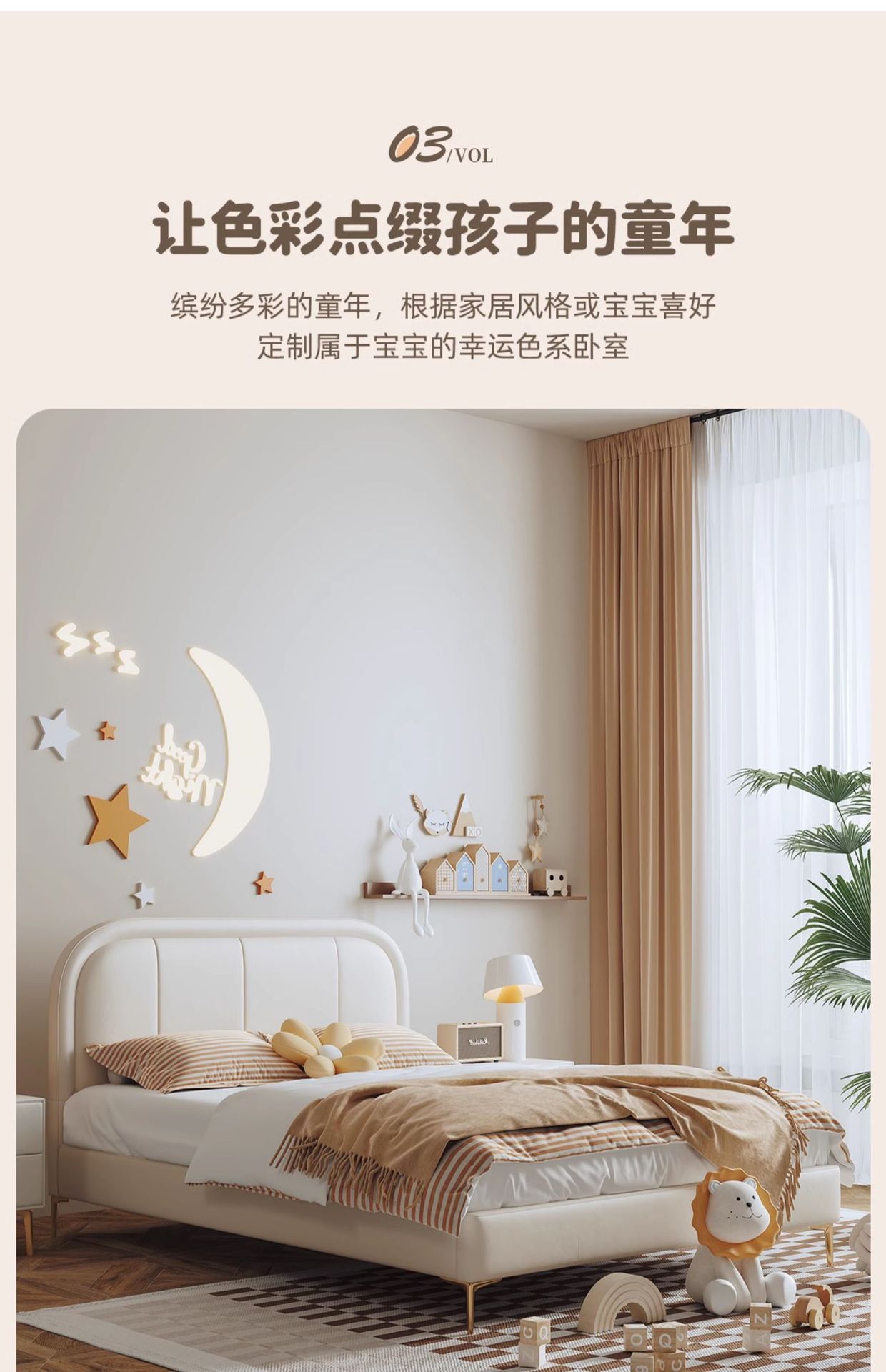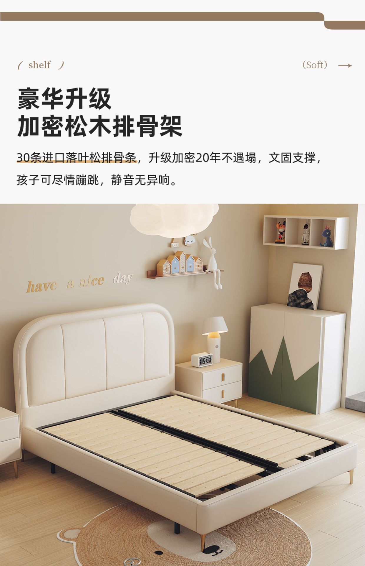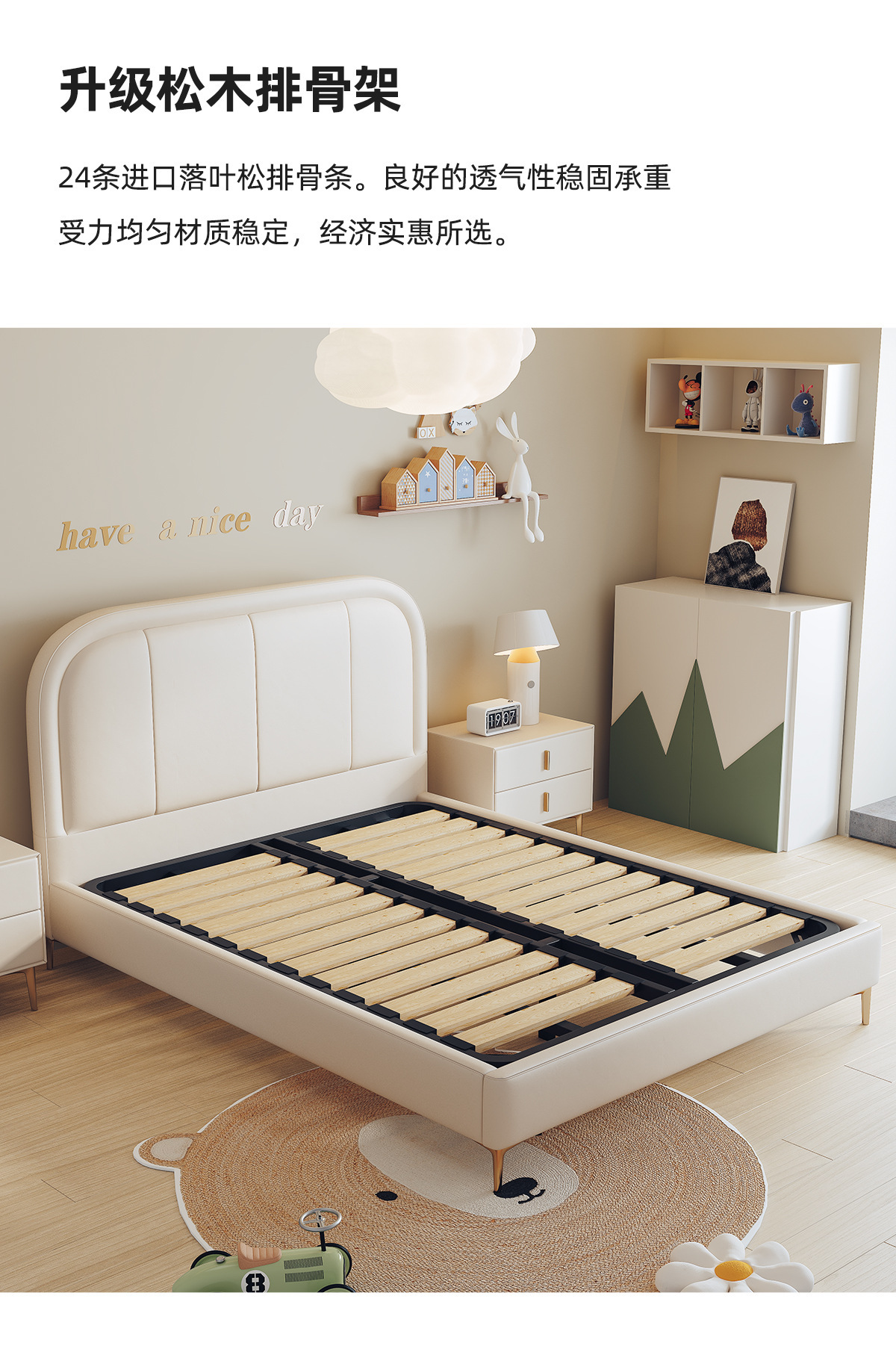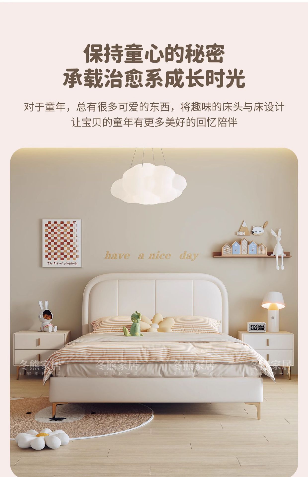 商品名称:吉与奶油风儿童床现代简约男孩男生单人床轻奢皮艺少女女孩公主床