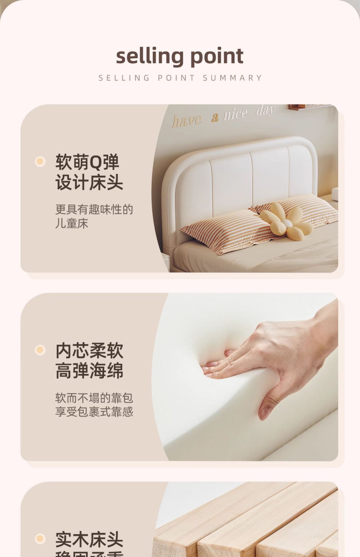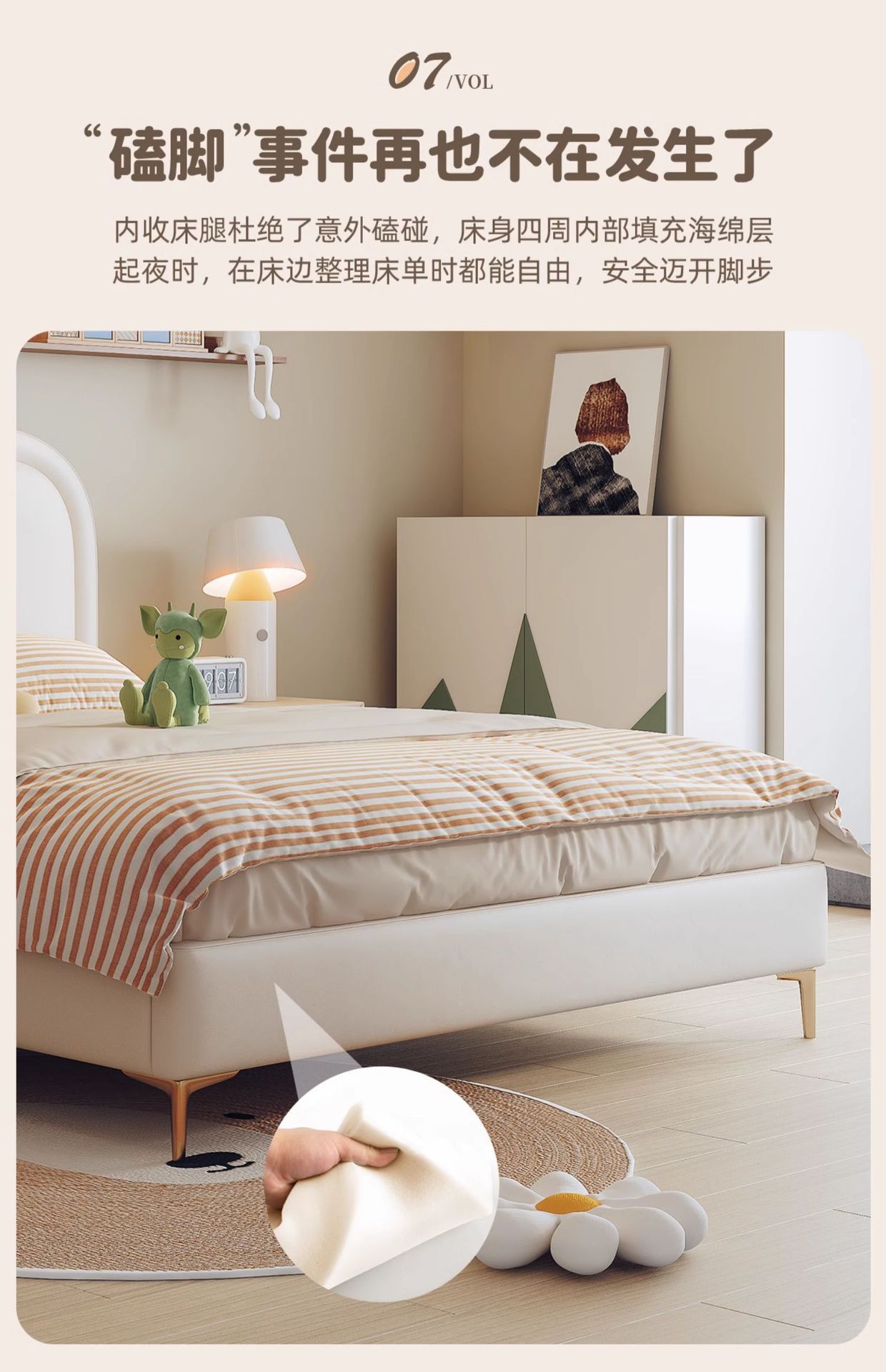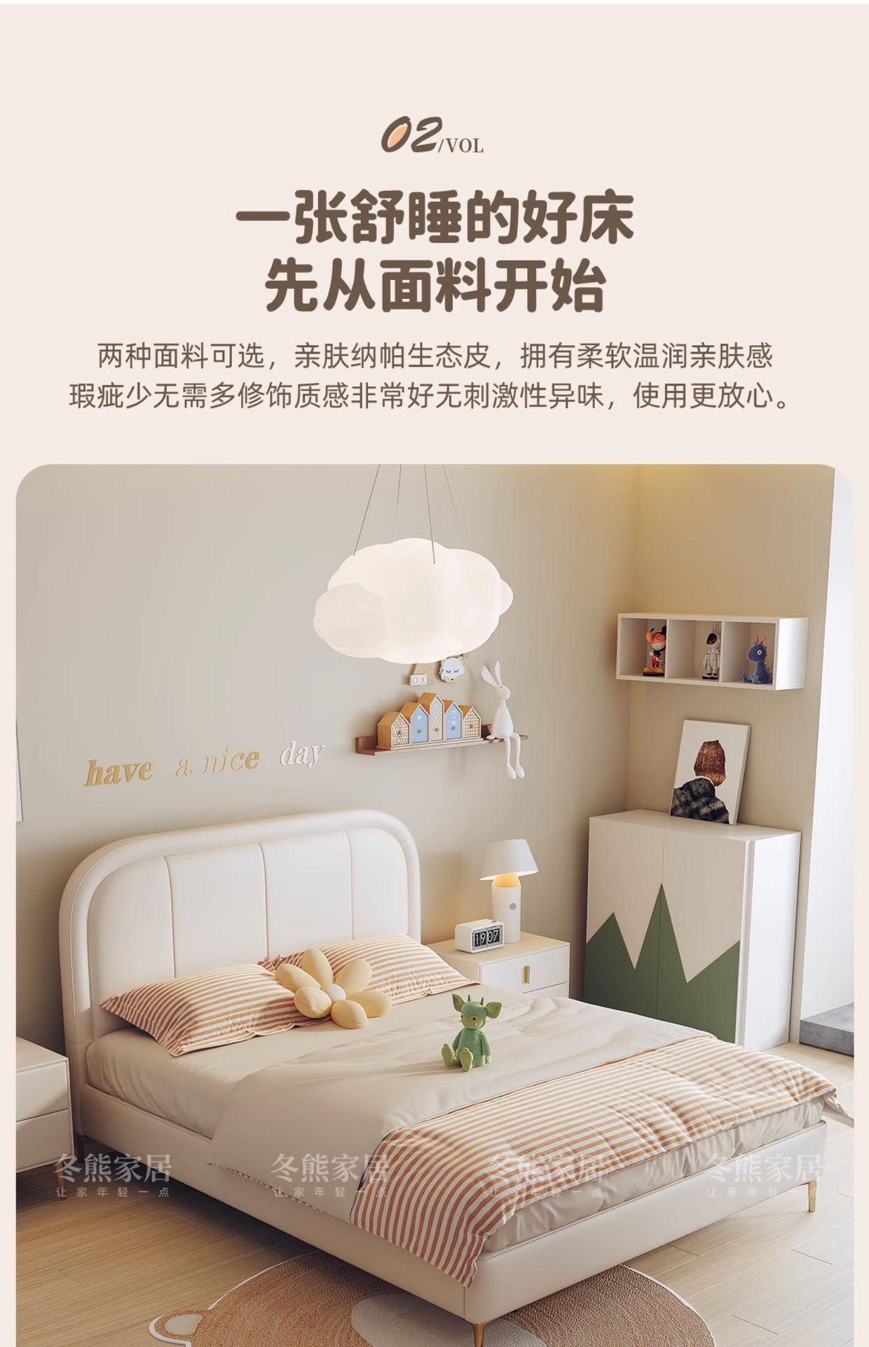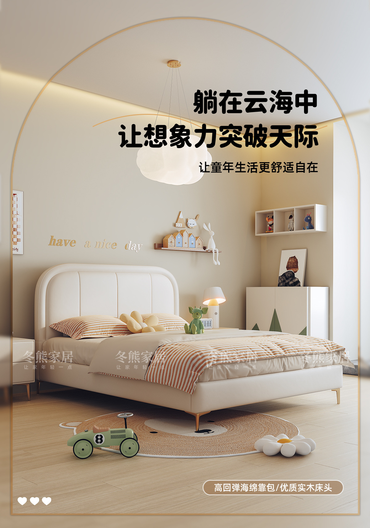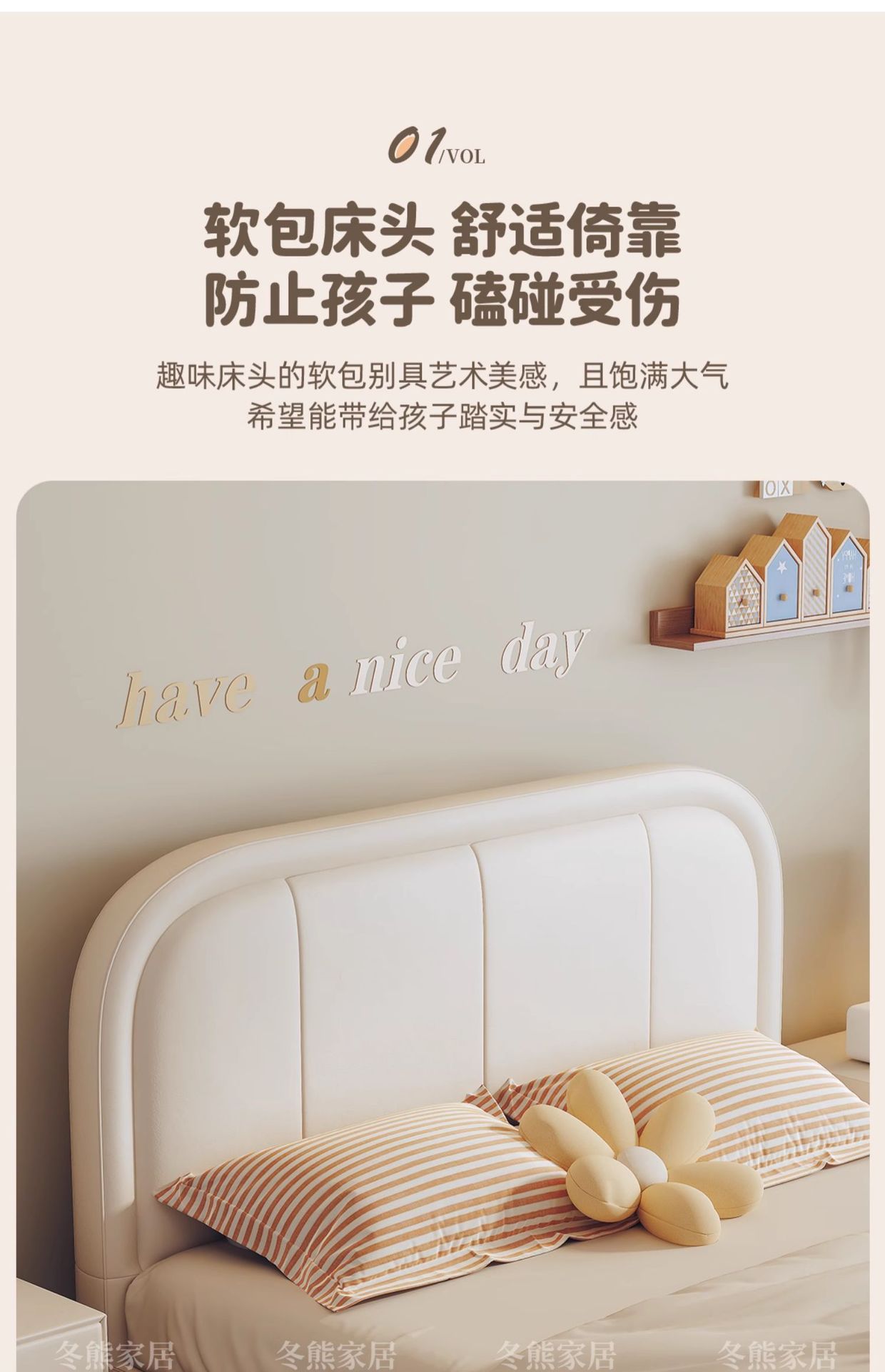 商品名称:吉与奶油风儿童床现代简约男孩男生单人床轻奢皮艺少女女孩公主床