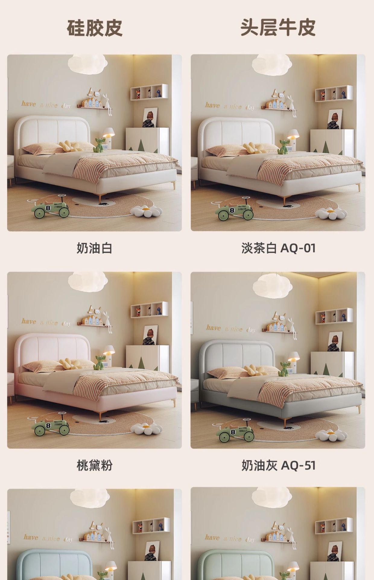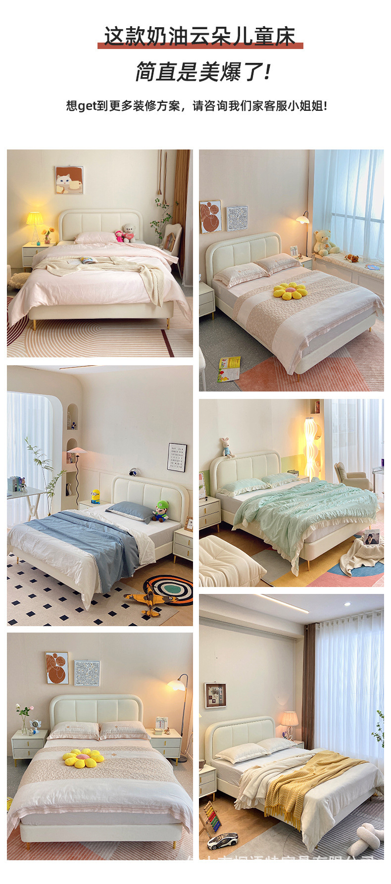 吉与奶油风儿童床现代简约男孩男生单人床轻奢皮艺少女女孩公主床