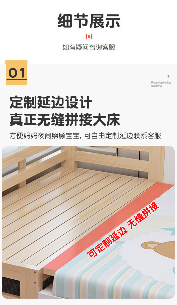 商品名称:全实木拼接床儿童床实木婴儿床加厚加粗拼接大床小孩床边床平接床