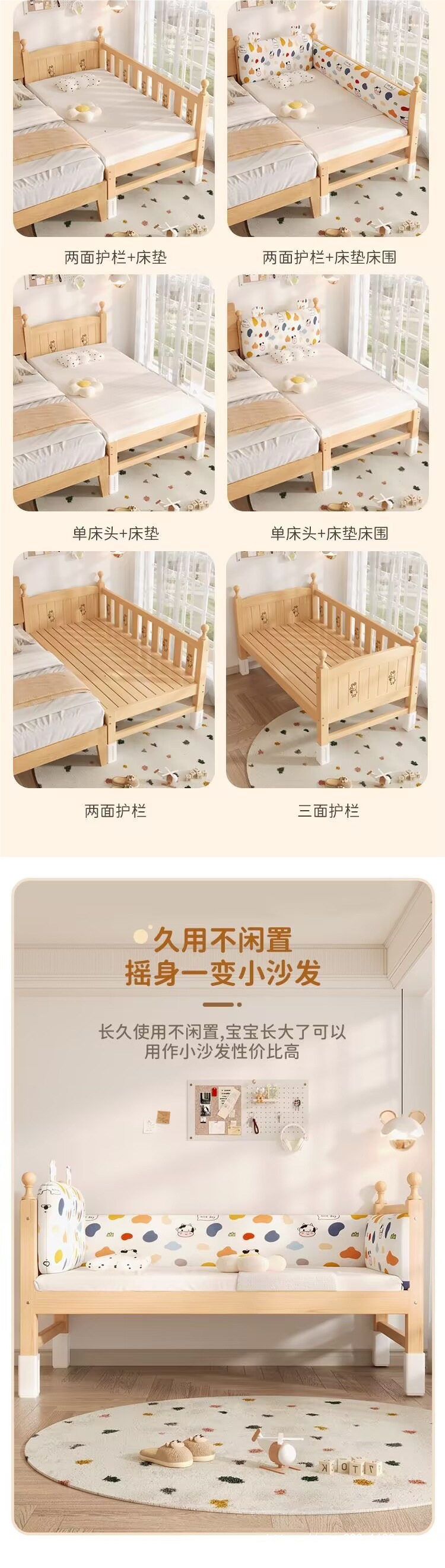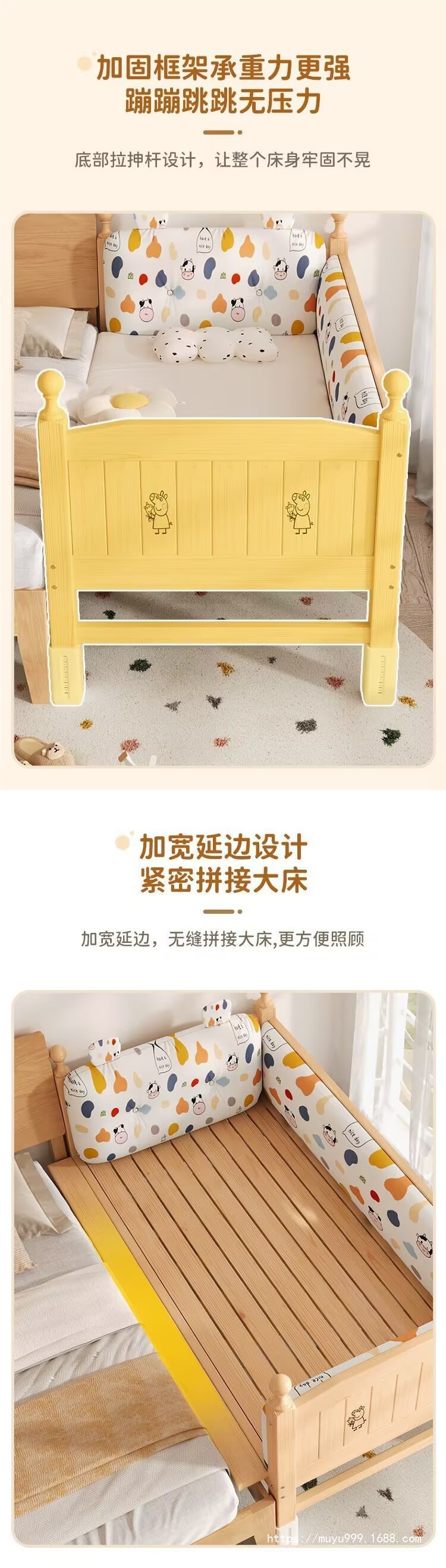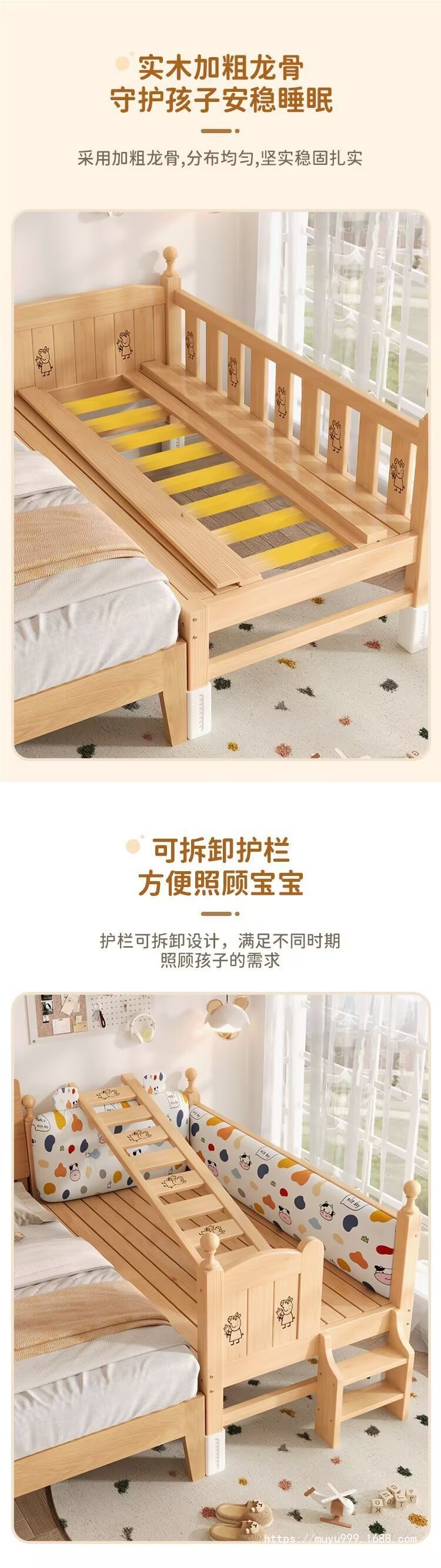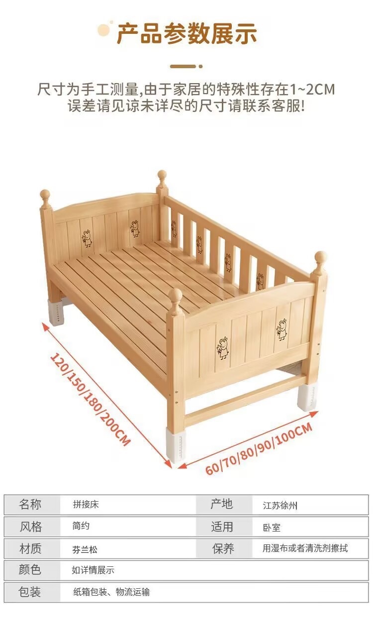 商品名称:儿童护栏拼接床加厚加粗婴儿小床拼接大床男孩女孩纯实木单人床