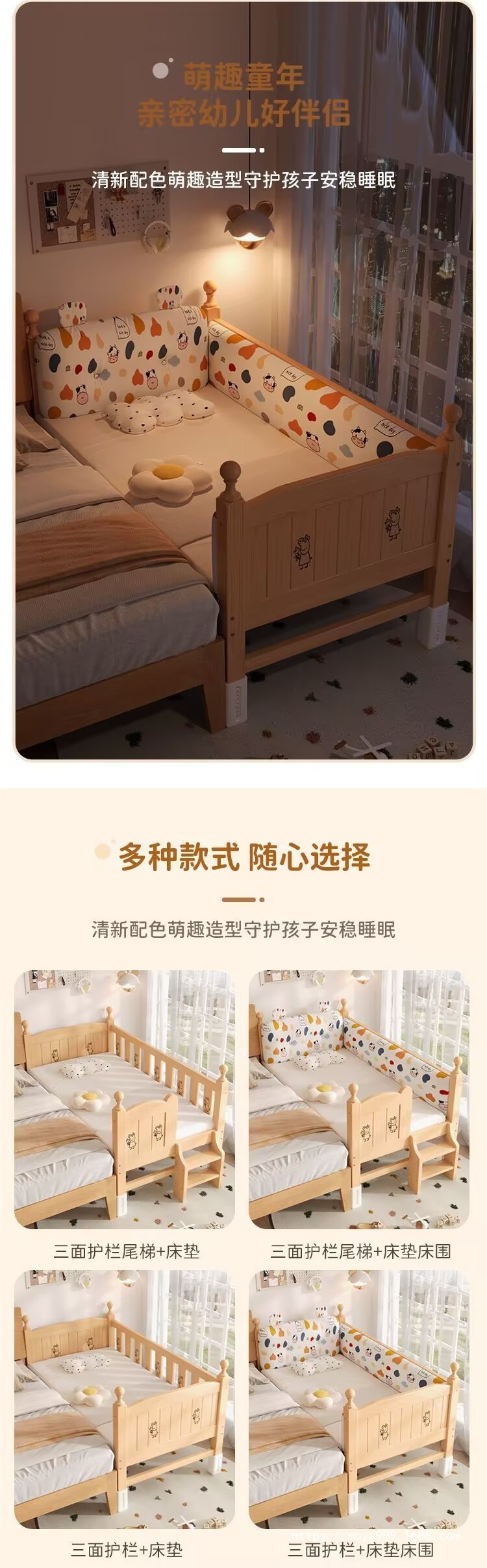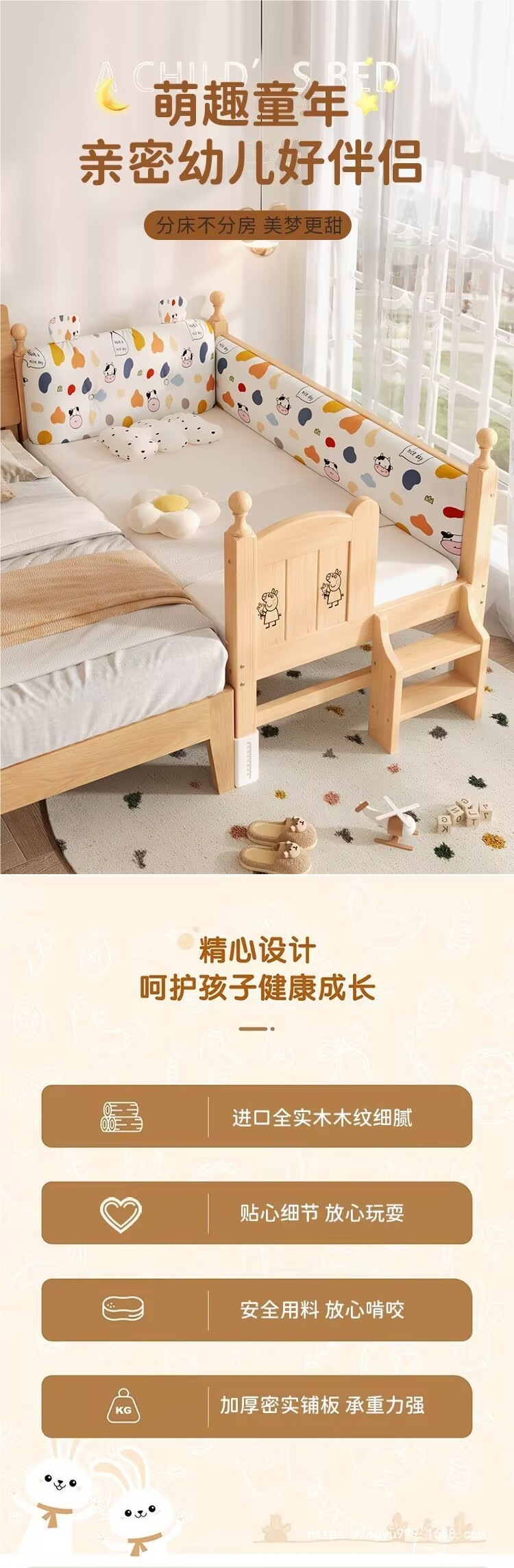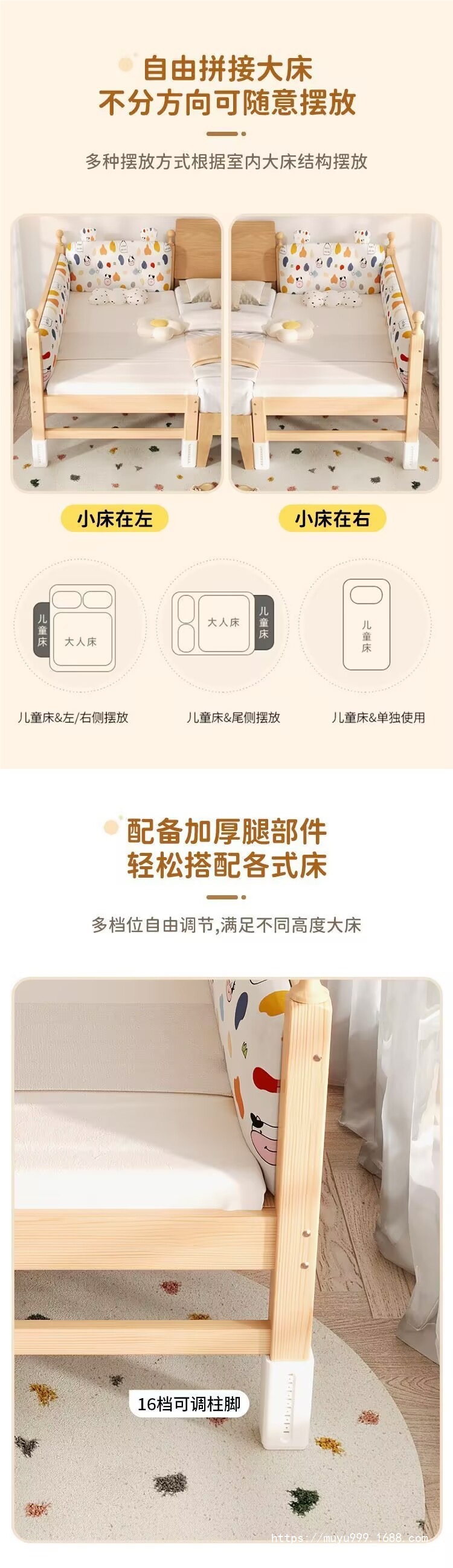 商品名称:儿童护栏拼接床加厚加粗婴儿小床拼接大床男孩女孩纯实木单人床