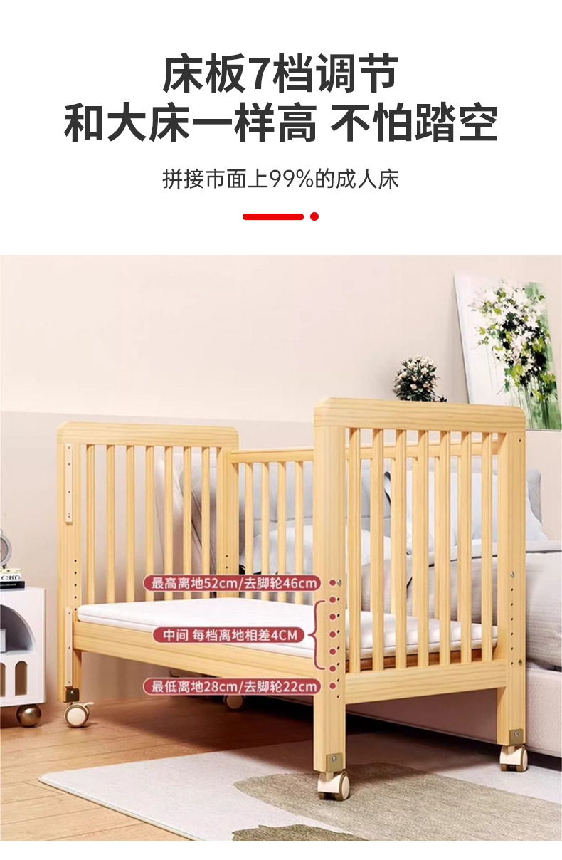商品名称:婴儿床多种花色可睡至6岁大空间宝宝安睡更舒适可拼接大床