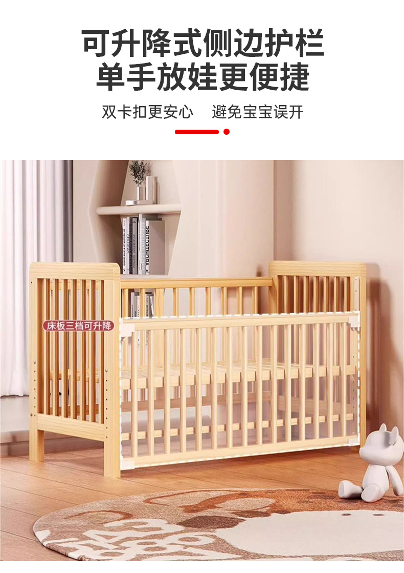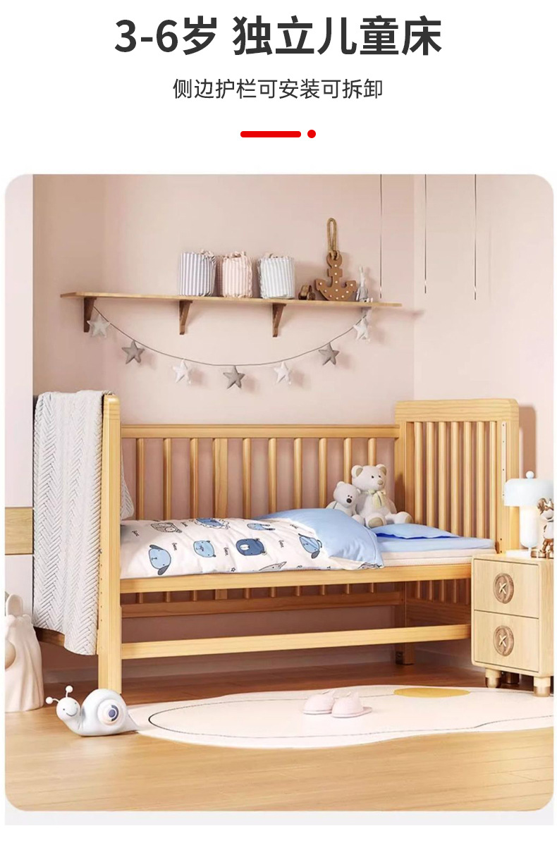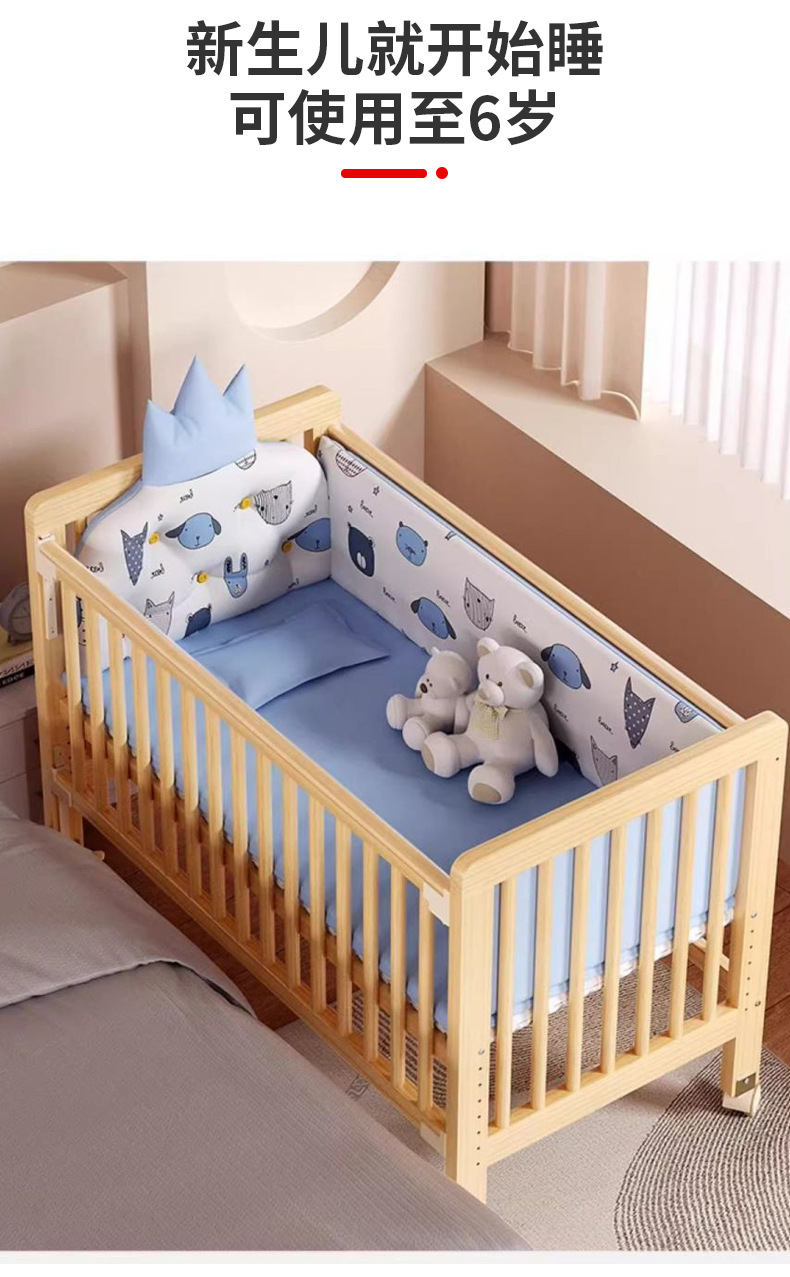 婴儿床多种花色可睡至6岁大空间宝宝安睡更舒适可拼接大床