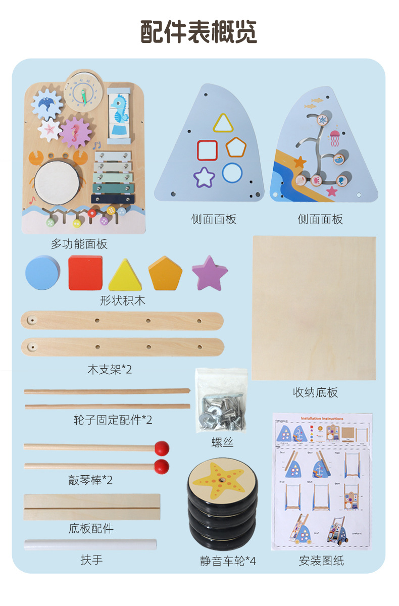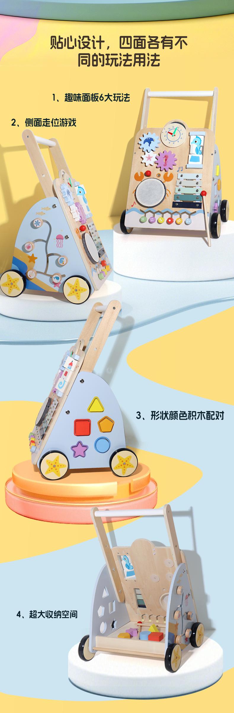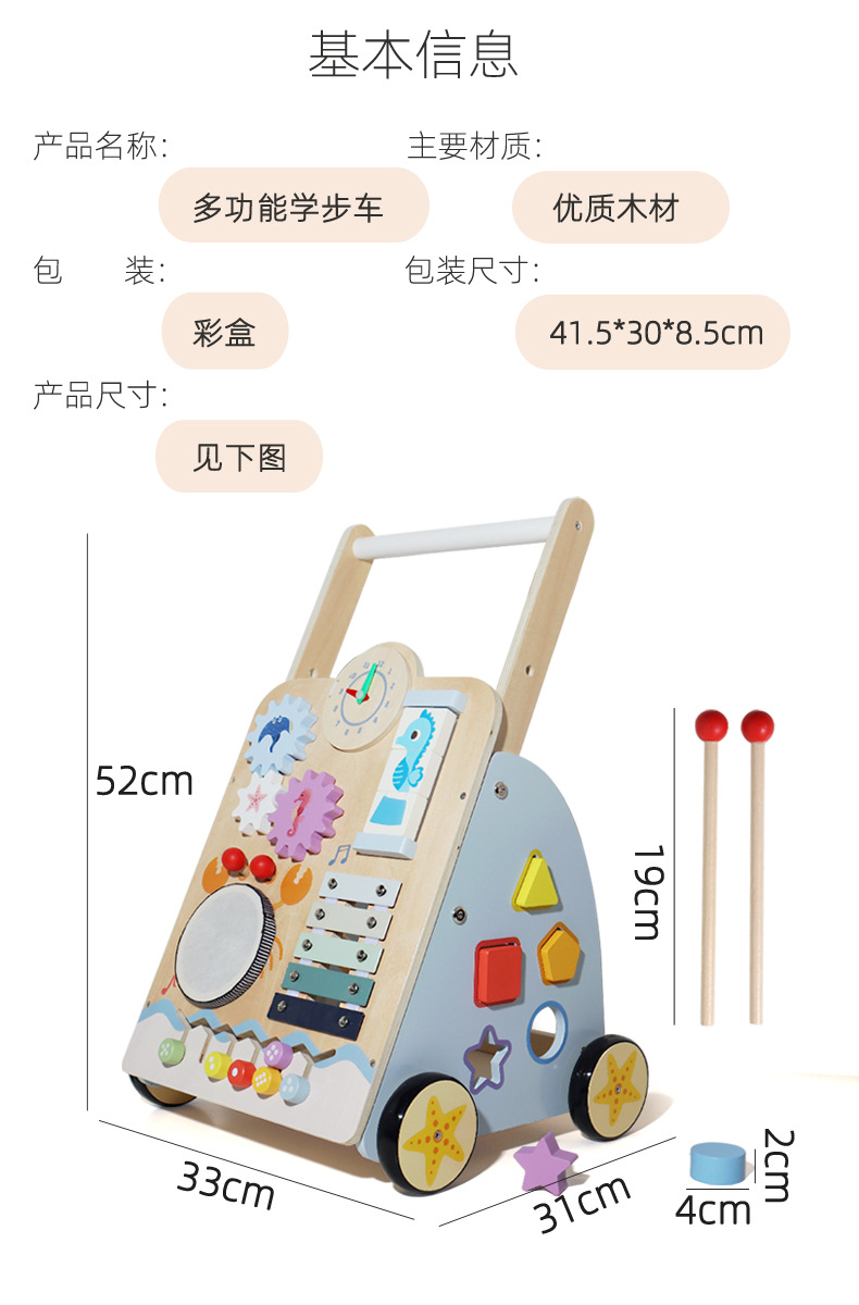商品名称:木制儿童手推车学步车宝宝学走路防侧翻助步车敲琴画板多功能玩具
