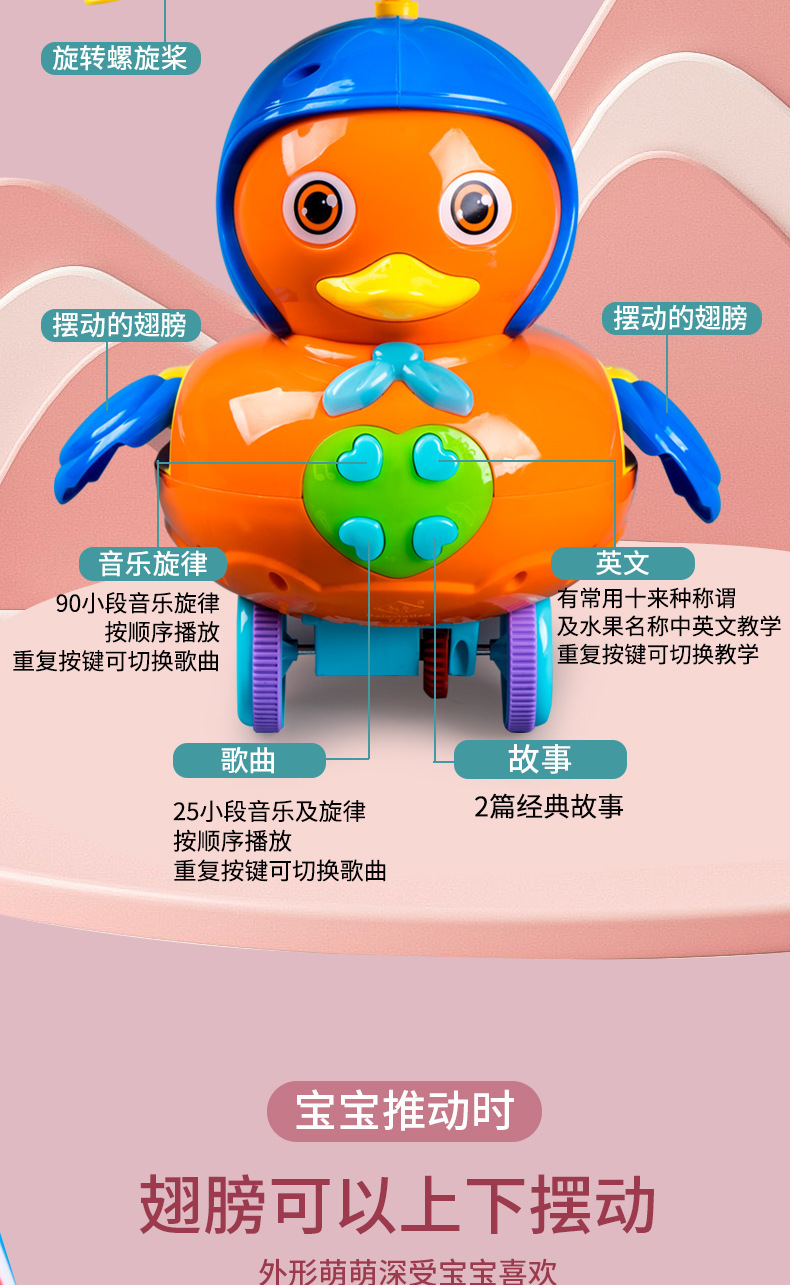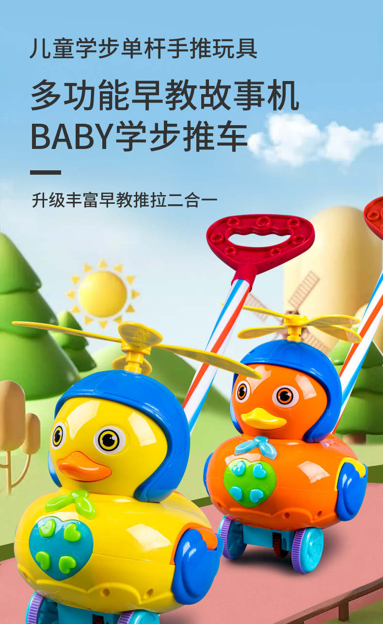 商品名称:婴儿学步车宝宝学走路手推卡通萌鸭升级音乐故事推推乐儿童玩具