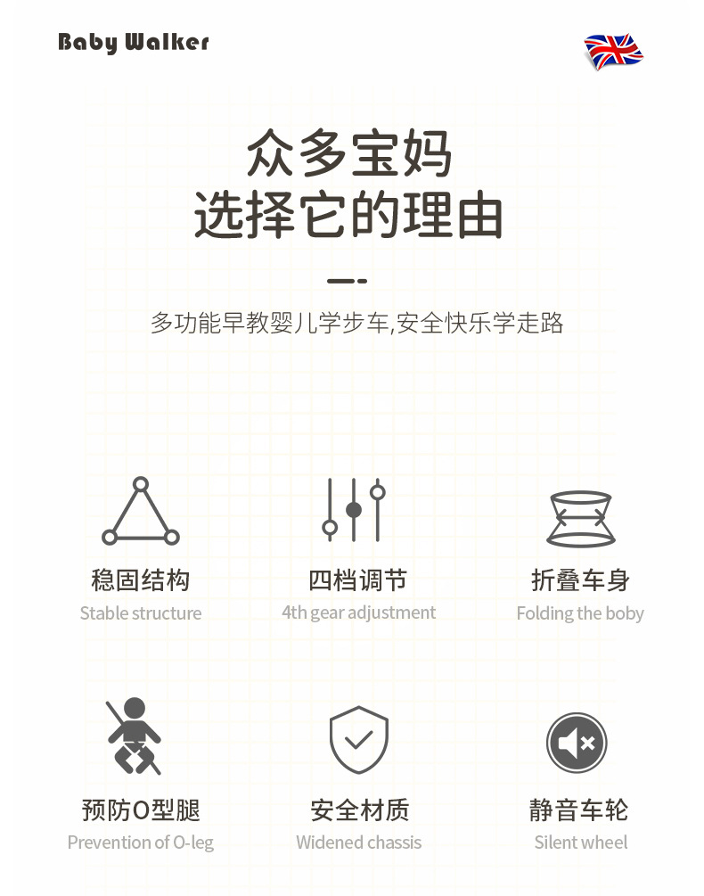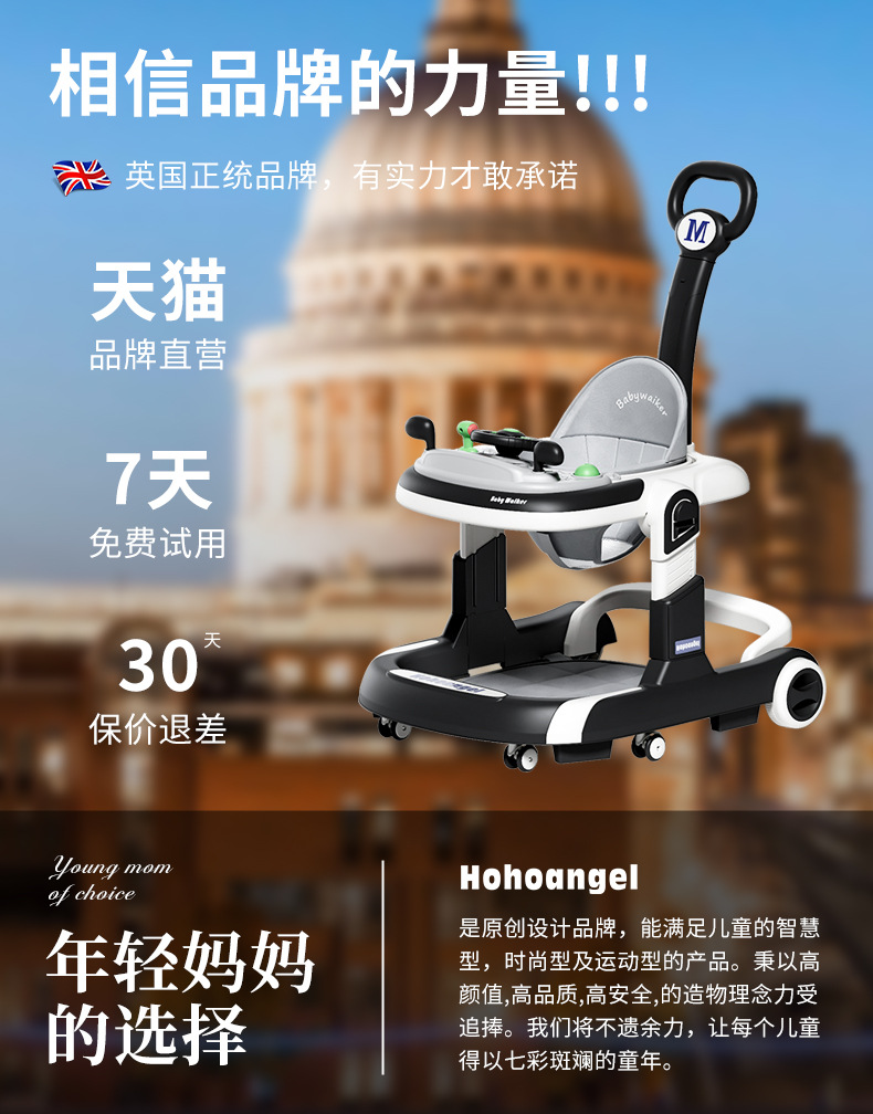 商品名称:hohoangel学步车防o型腿2024新款婴儿手推助步车防侧翻可折叠