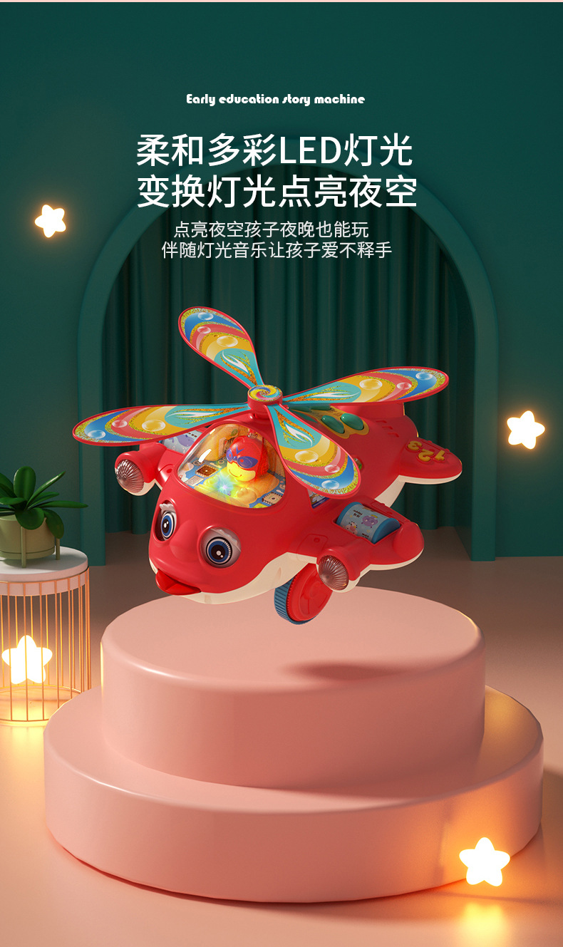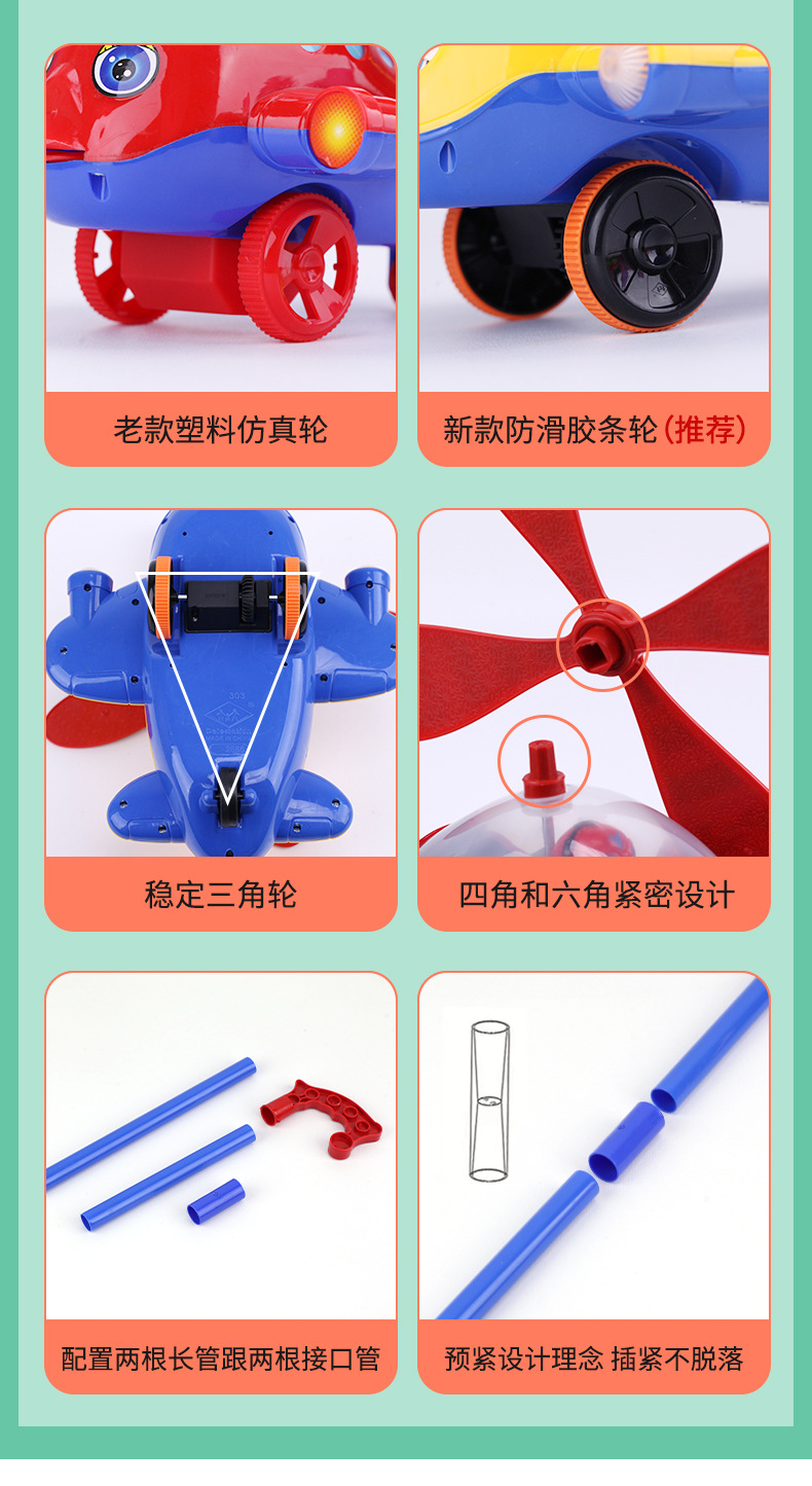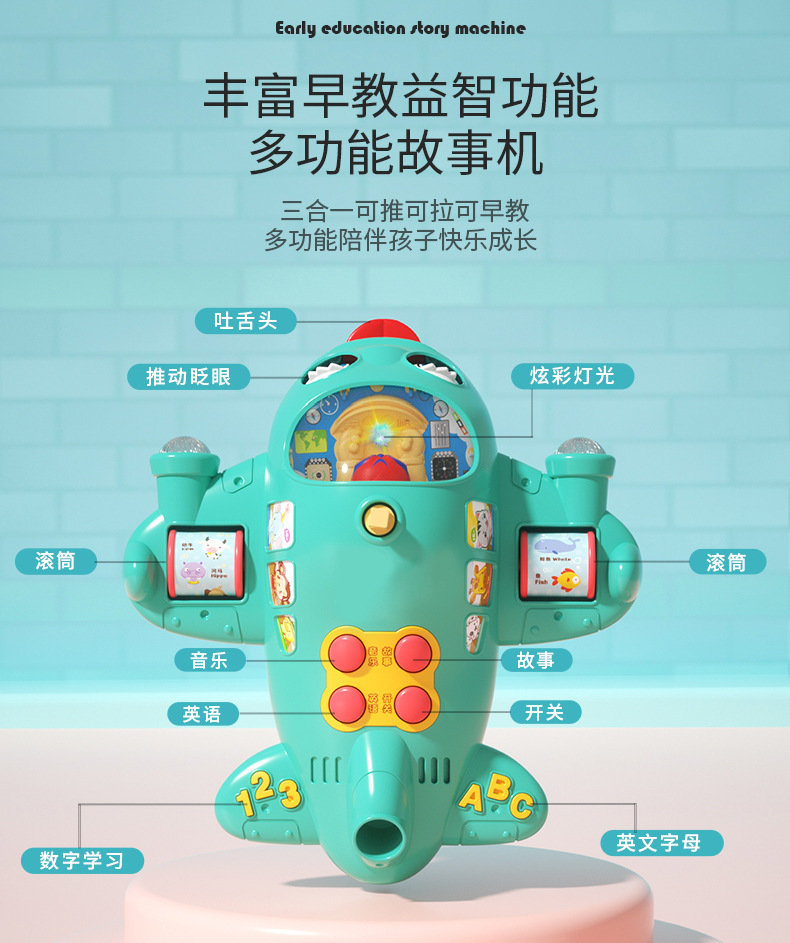 【防滑款】手推故事音乐飞机绿色(电池款)配牵引绳
