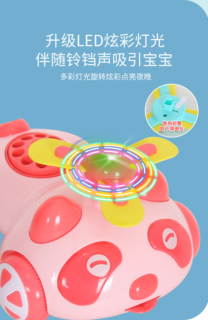【防滑款】手推故事音乐飞机粉色(电池款)配牵引绳