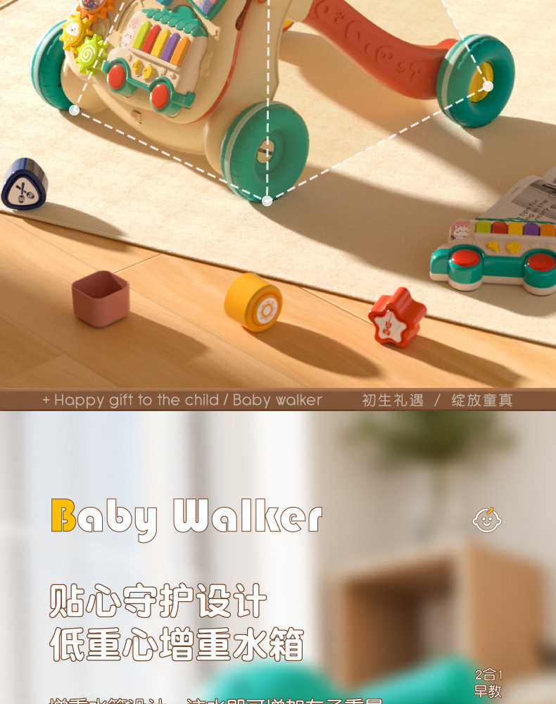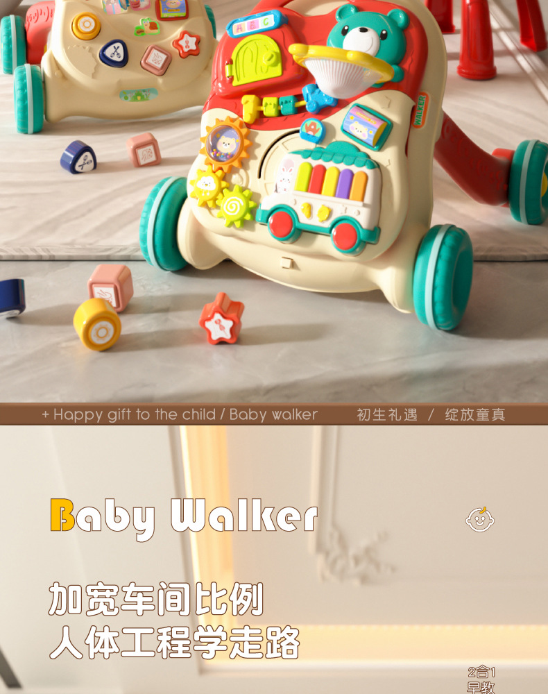 送礼必备【高配电池款】多功能学步手推车(彩盒+邮购盒)