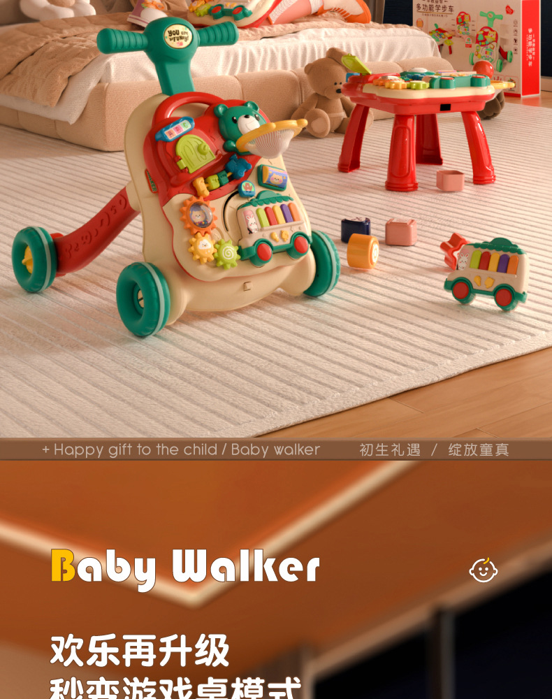 送礼必备【高配充电款】多功能学步手推车(彩盒+邮购盒)