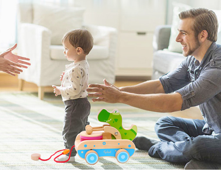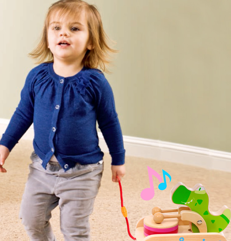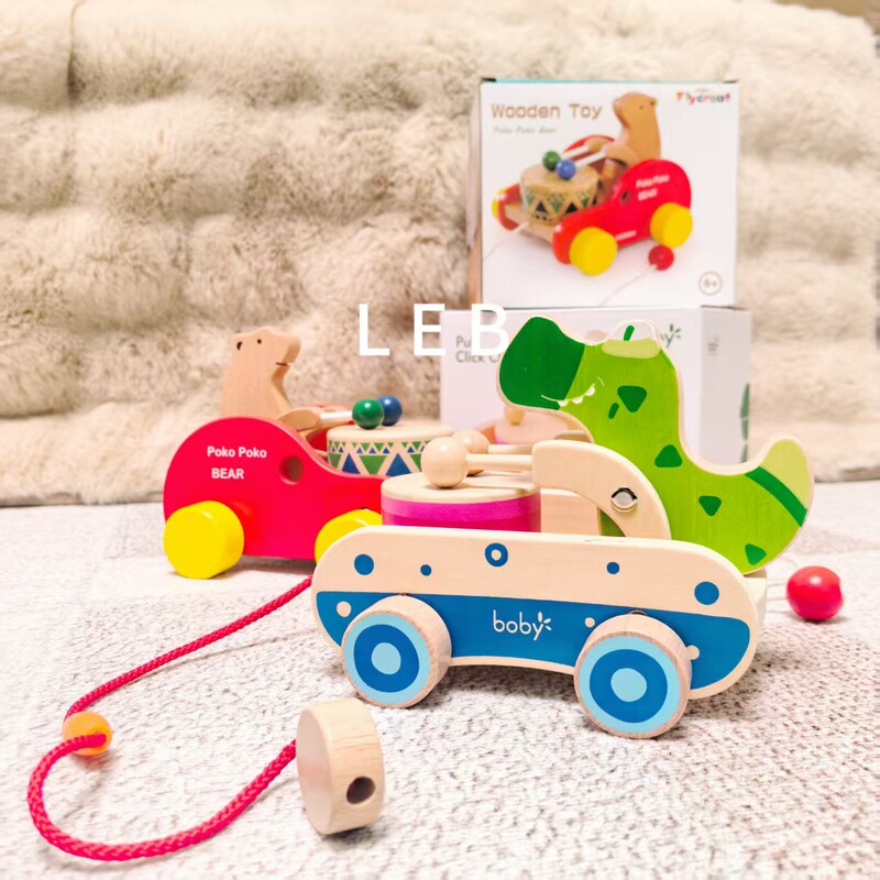 宝宝3岁牵引益智学步车早教婴幼敲鼓音乐木质玩具车拉线绳手拉车1