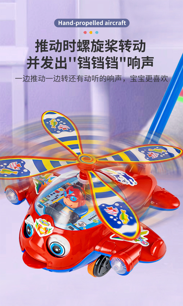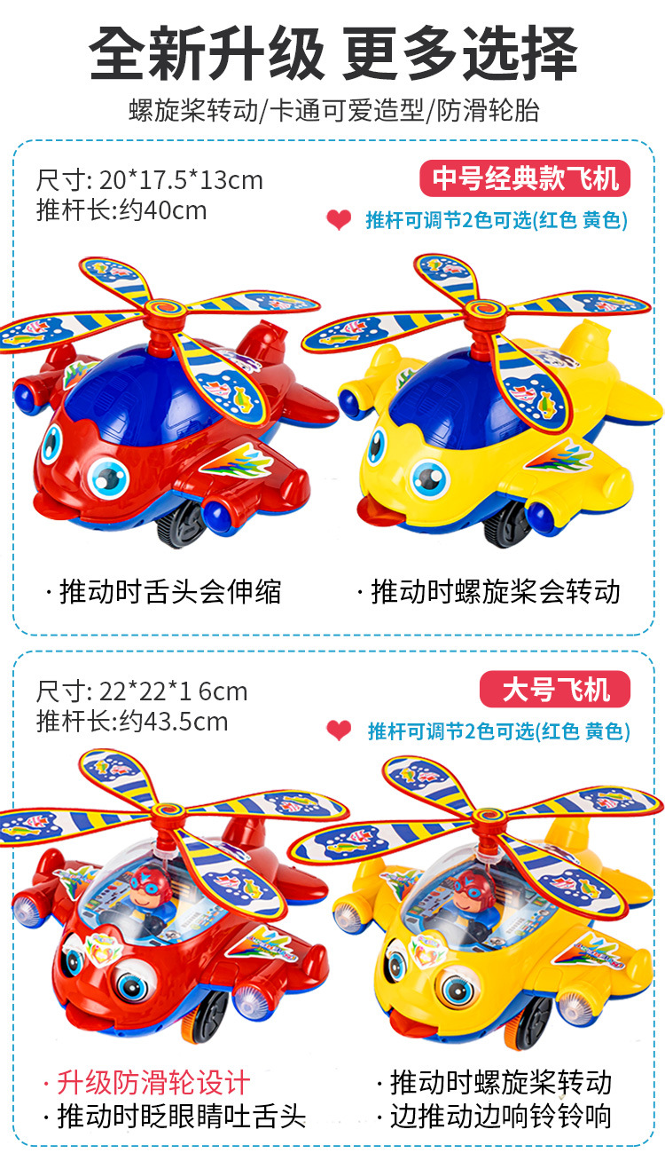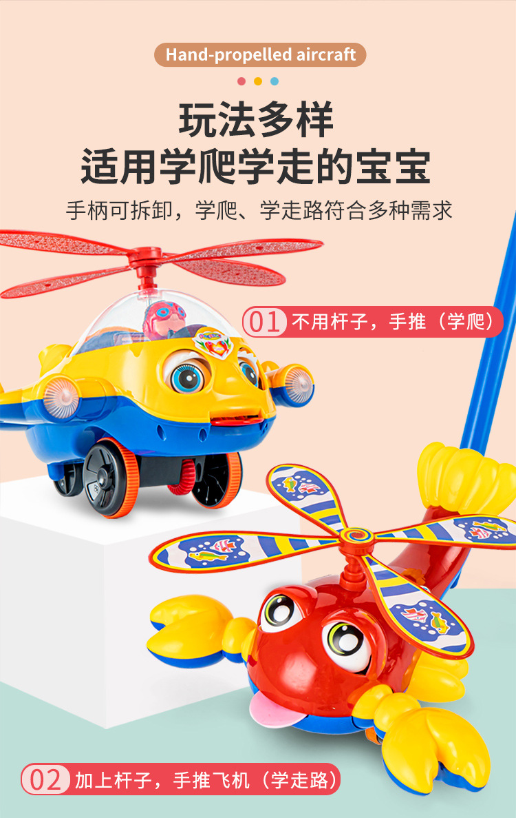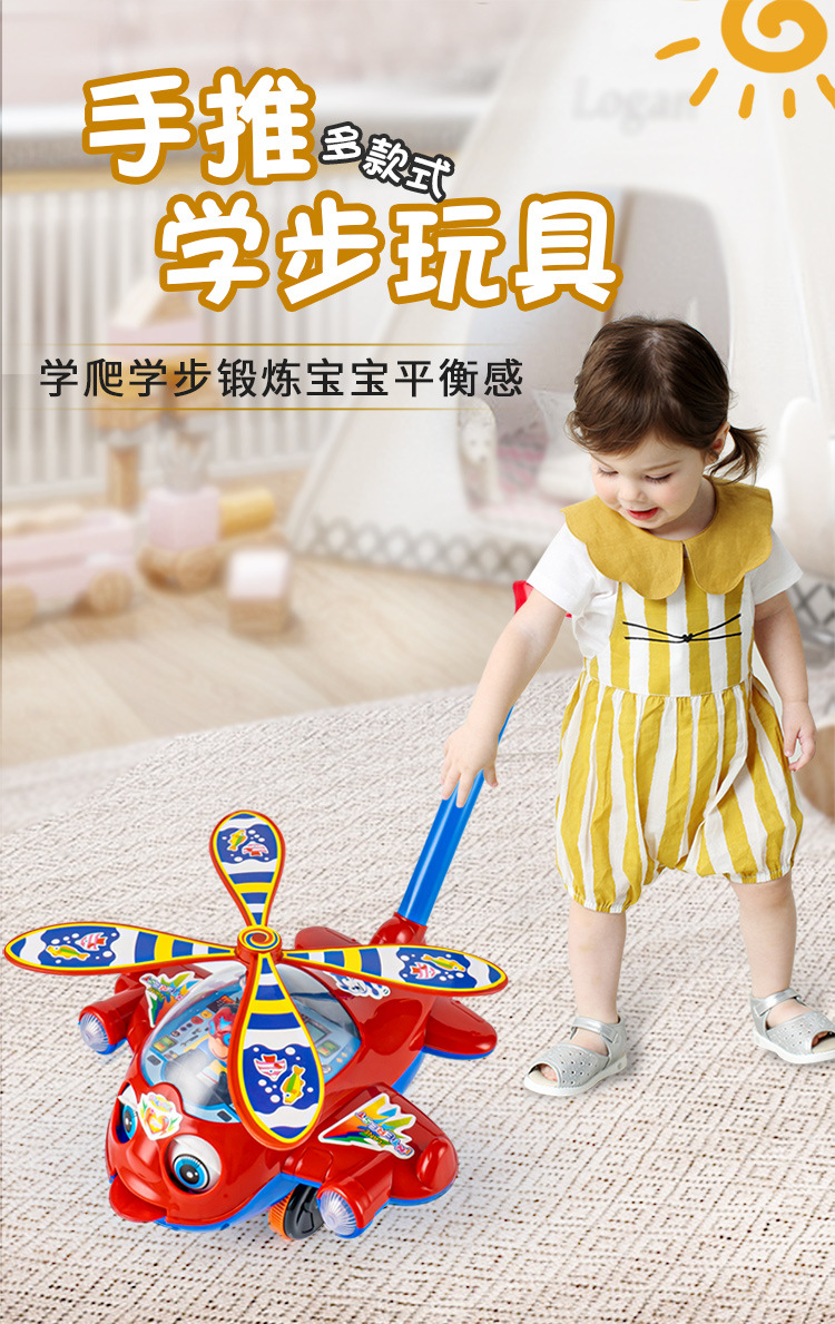 宝宝学步手推车蝴蝶多功能助步车响铃手推飞机地摊玩具礼物推推乐