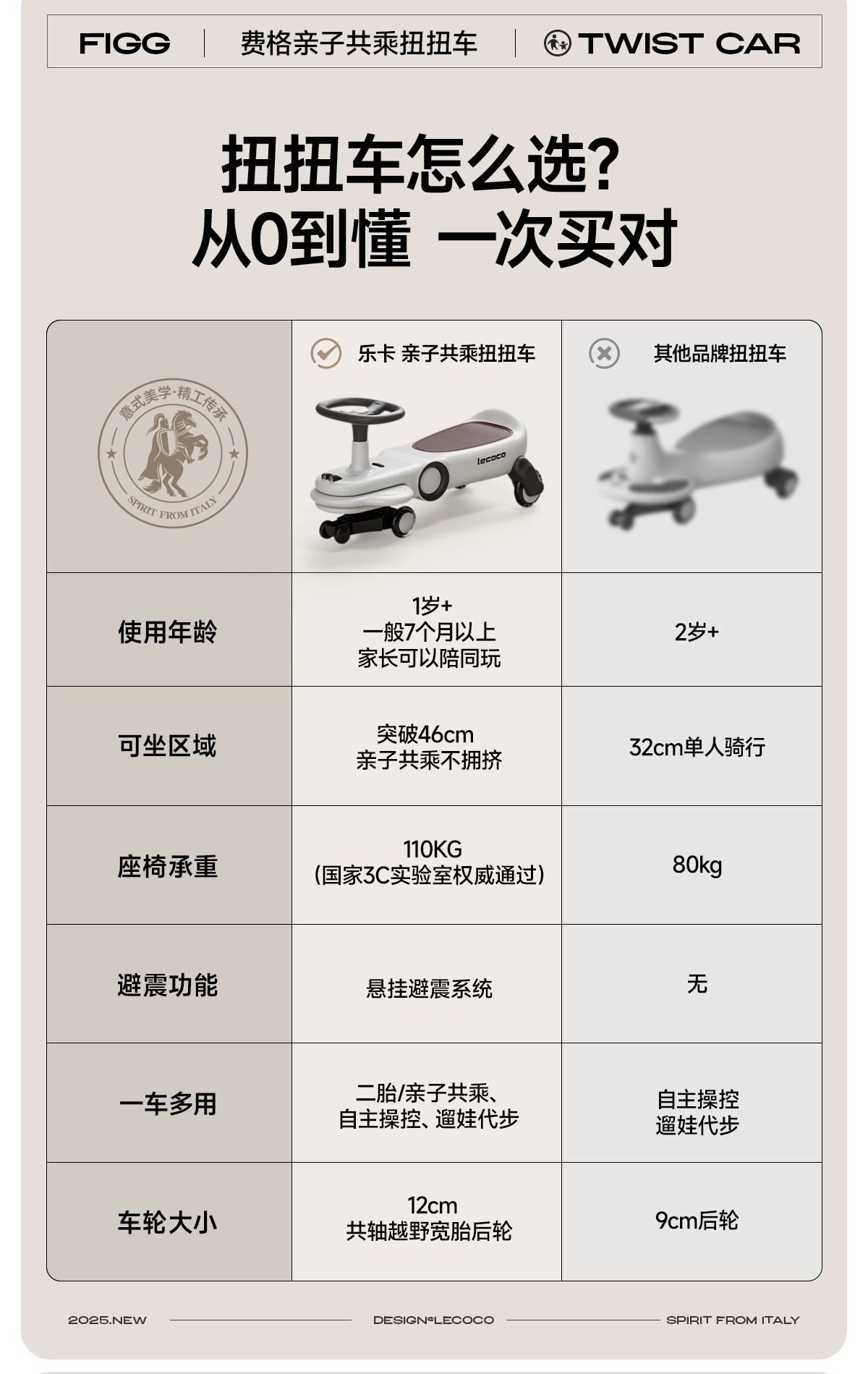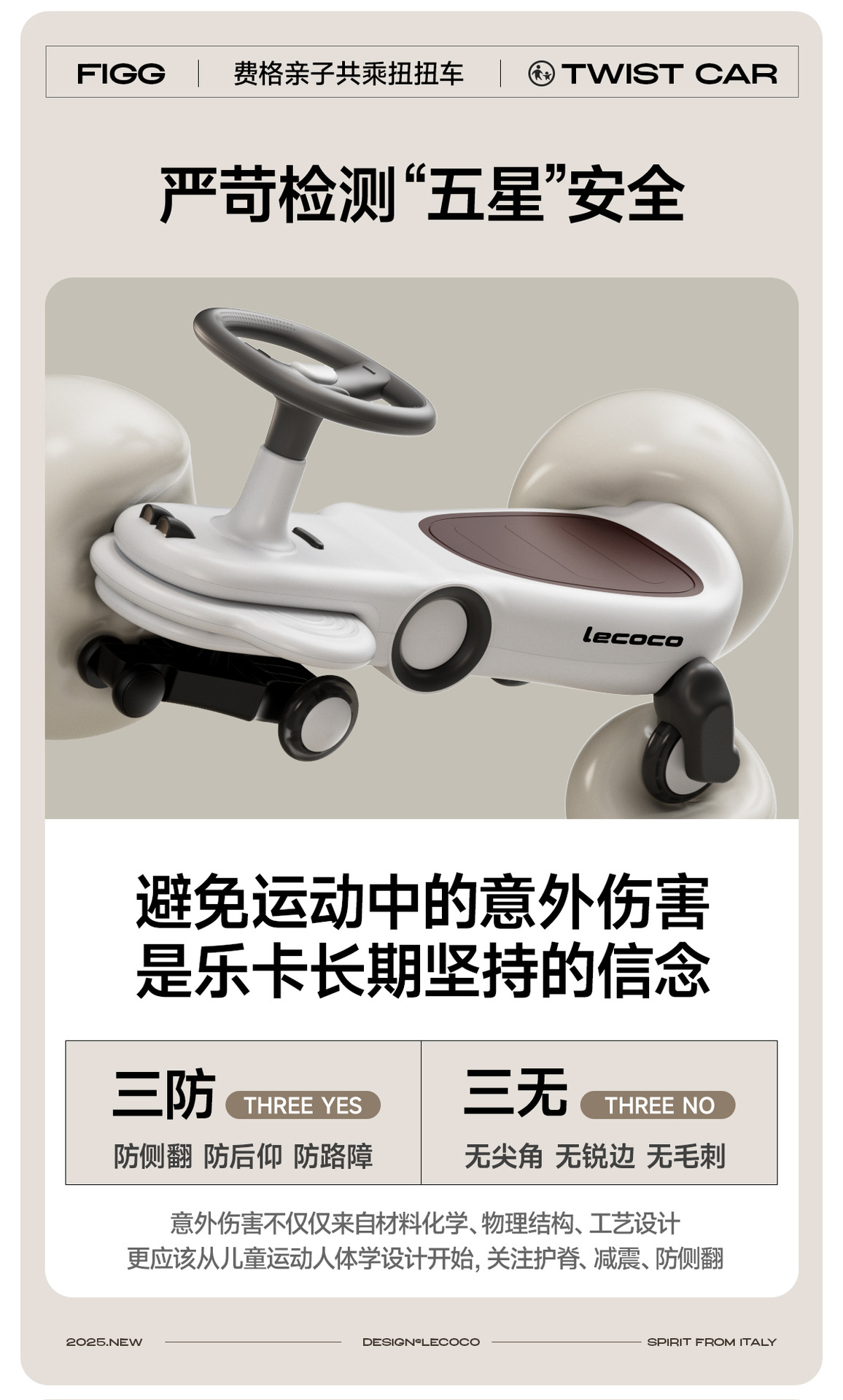 乐卡lecoco儿童扭扭车静音摇摇车男女宝宝玩具1-3岁防侧翻溜溜车