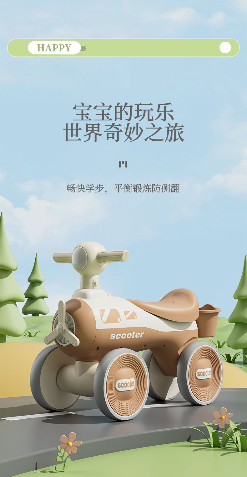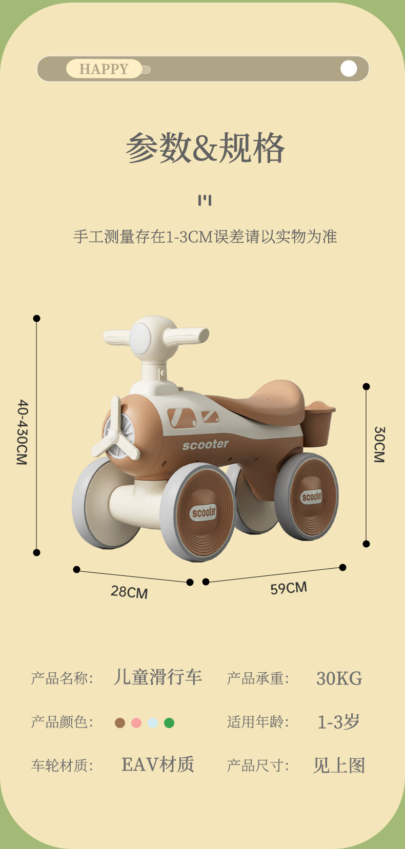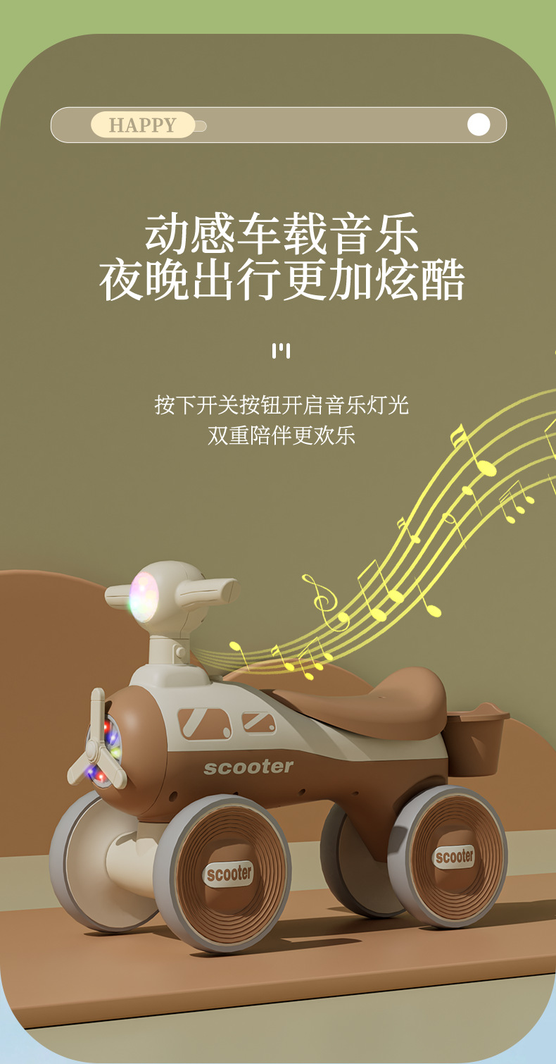 商品名称:新款滑行车1-5岁男女宝宝平衡车防侧翻带音乐助步宝宝摇摆滑行车