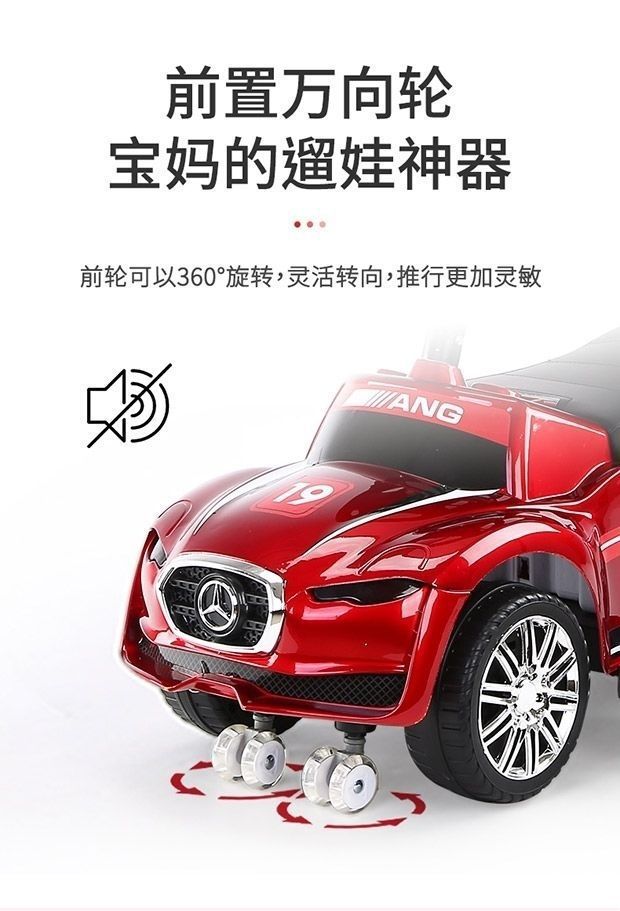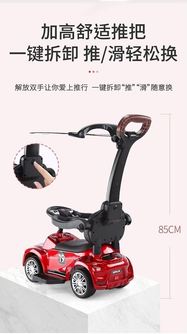 滑行车烤漆红+推把脚踏+皮座+遮阳棚