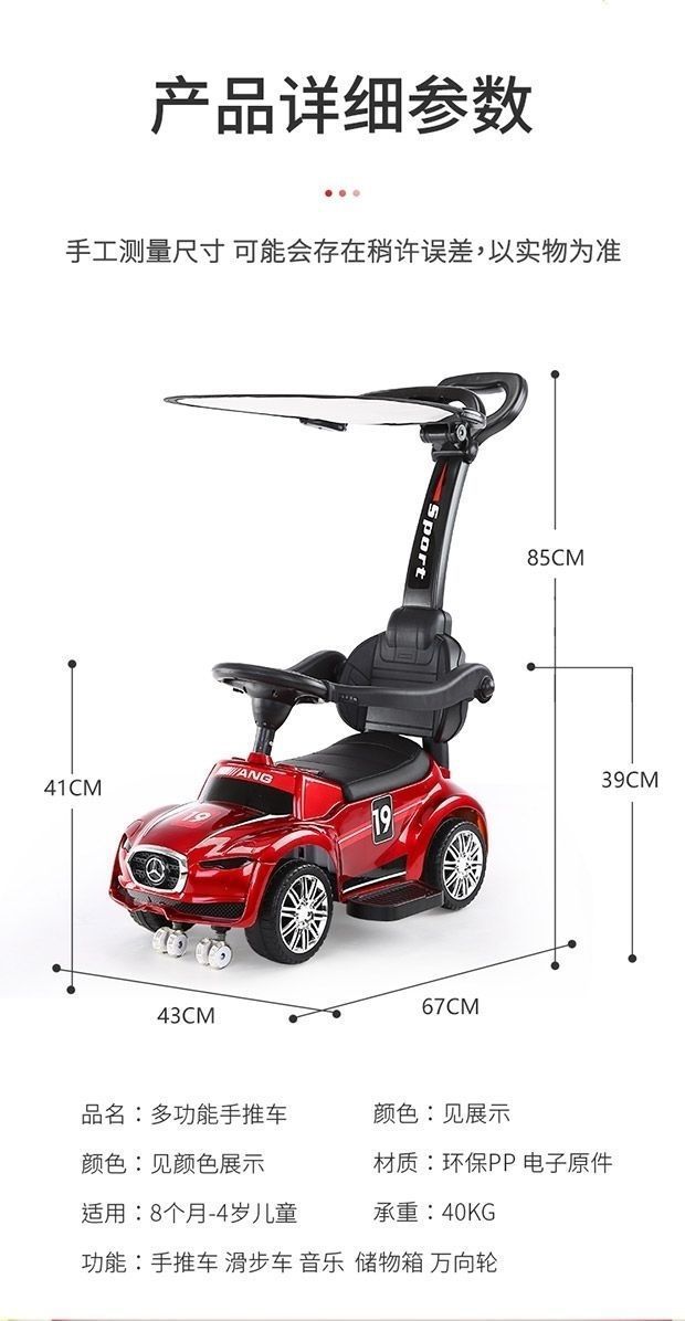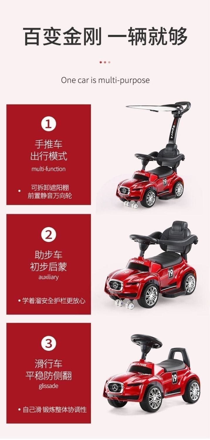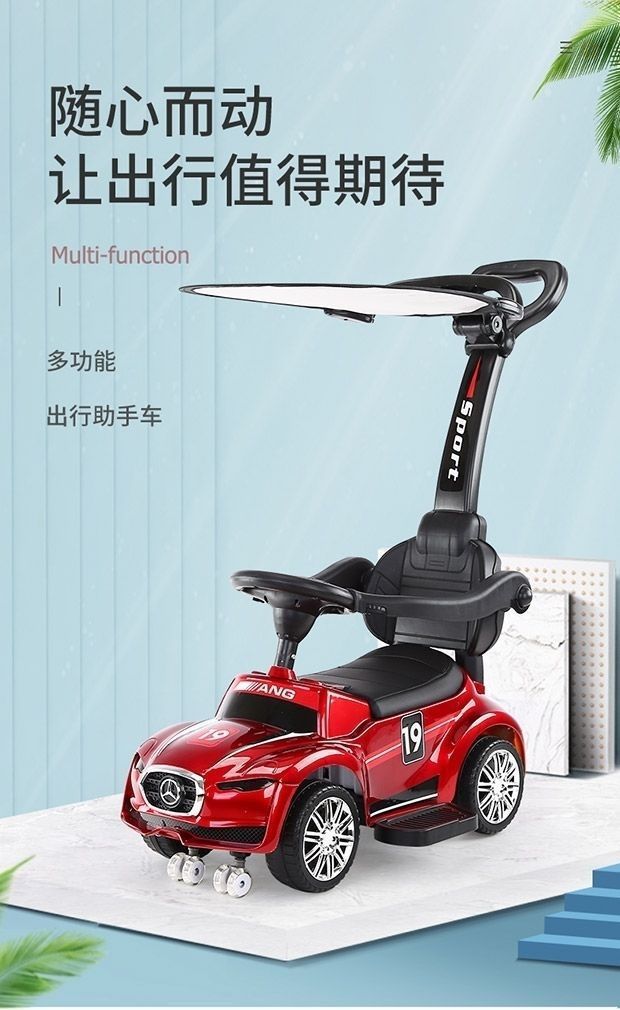 滑行车红色+推把脚踏护栏+遮阳棚