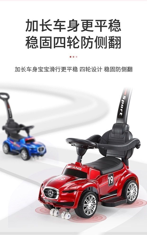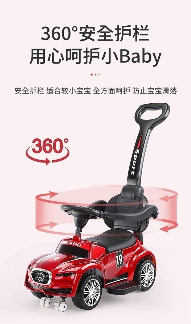 滑行车红色+推把脚踏护栏