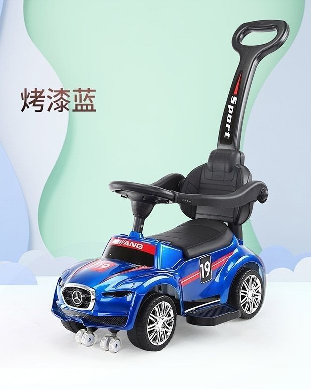 滑行车烤漆蓝色+推把脚踏护栏+皮座