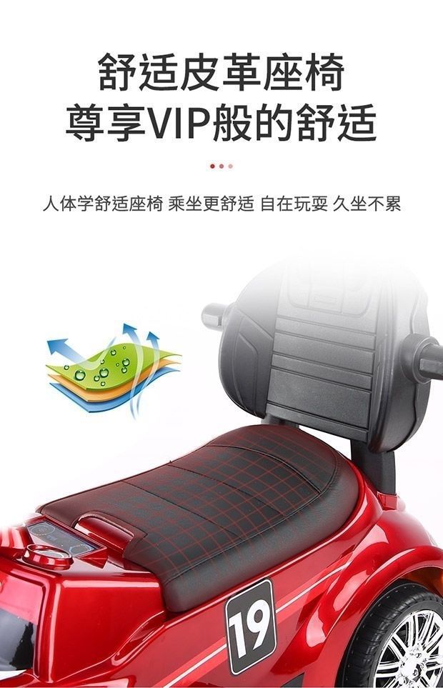滑行车烤漆红色+推把脚踏护栏+皮座