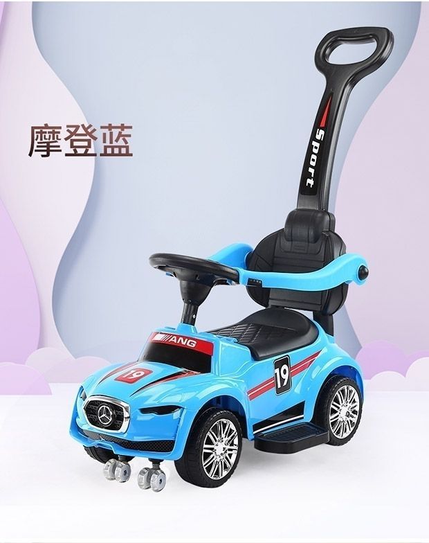 滑行车蓝色+推把脚踏护栏
