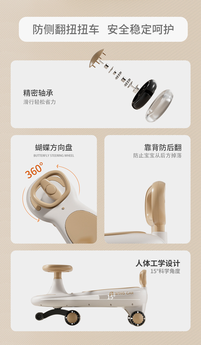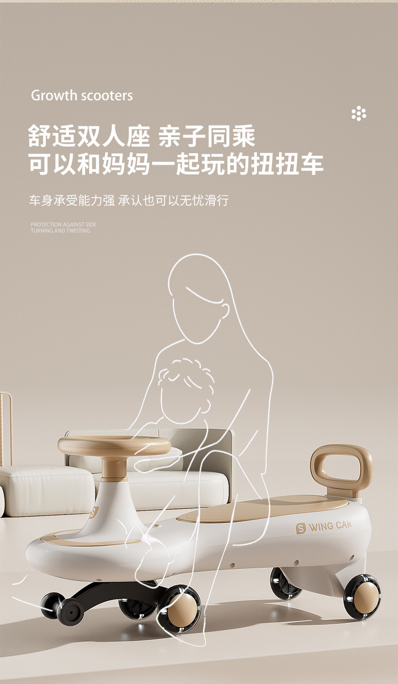 商品名称:儿童扭扭车1-12岁宝宝溜溜车防侧翻大人可坐静音轮摇摆音乐玩具车