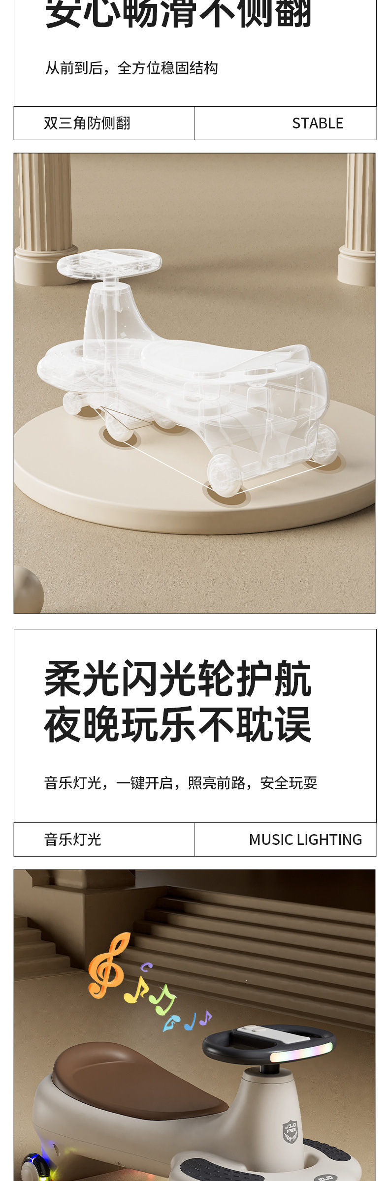 商品名称:儿童扭扭车成人可坐防侧翻玩具音乐静音轮男女宝宝摇摆车加长版本