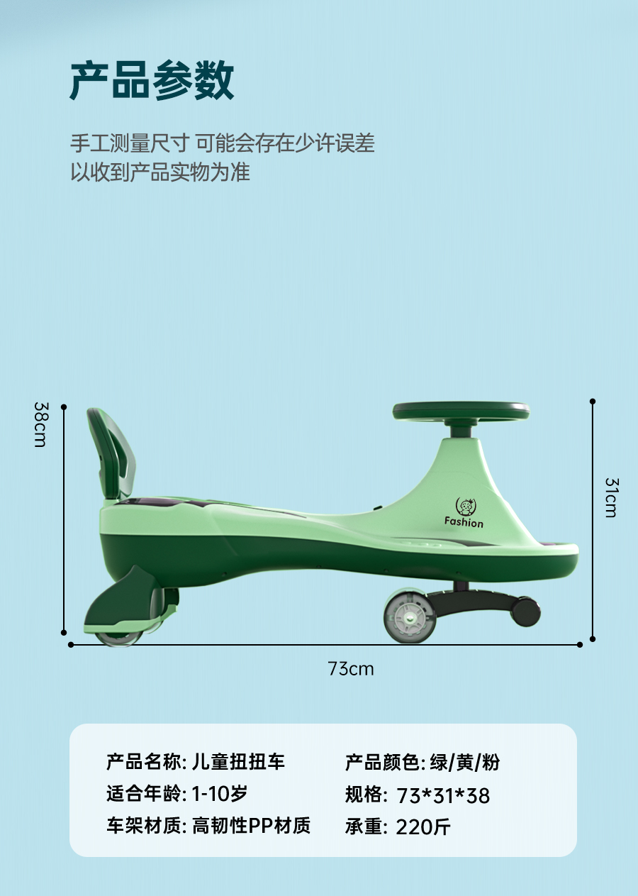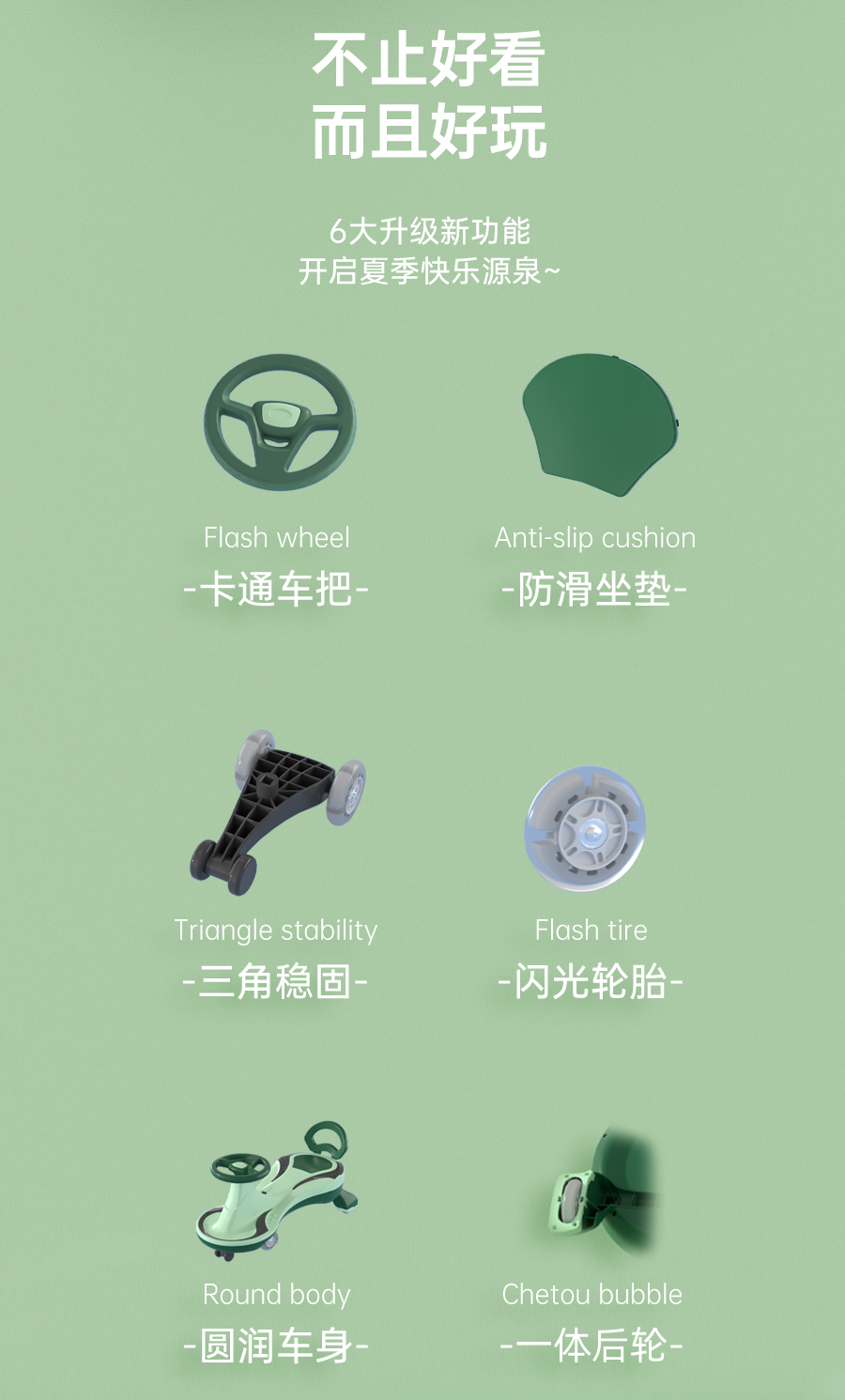 浅绿+静音闪光轮+音乐灯光+加厚车身