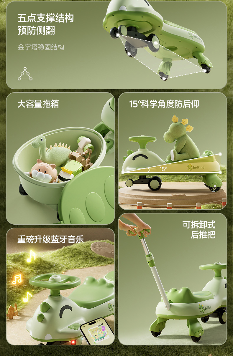 香草绿+手推+拖斗+蓝牙+音乐灯光