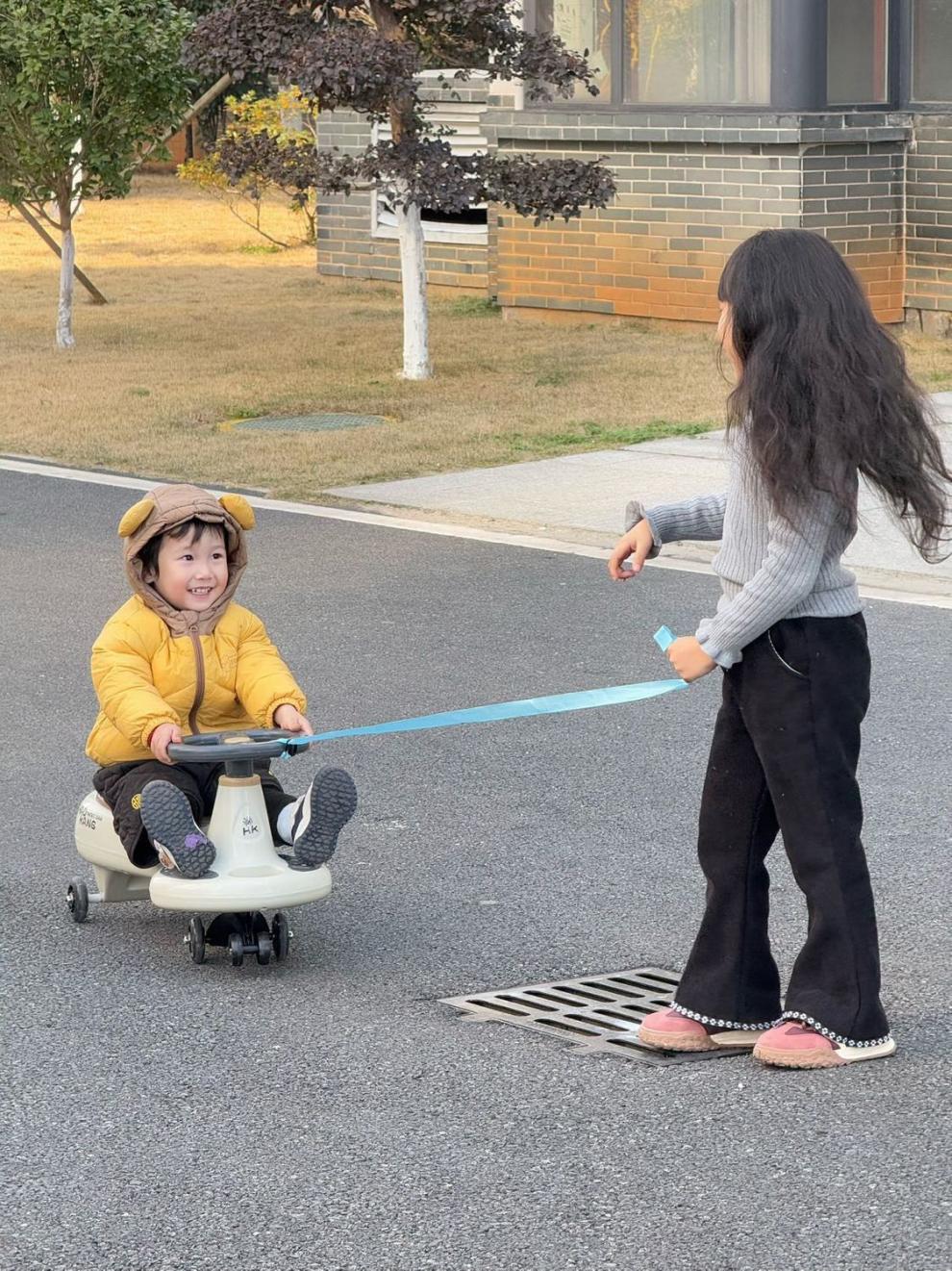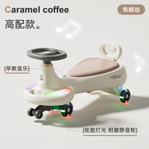 焦糖咖【亲子同乘】牵引绳 +加大车身-高配版+灯光音乐+静音闪光轮+载重200斤