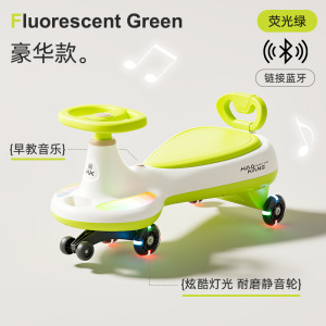 荧光绿【亲子同乘】牵引绳+加大车身-豪华款+蓝牙灯光音乐+静音闪光轮+200斤