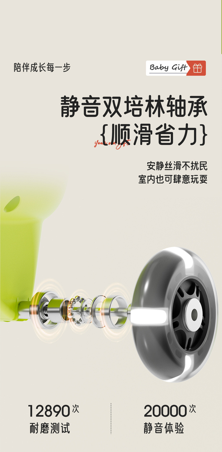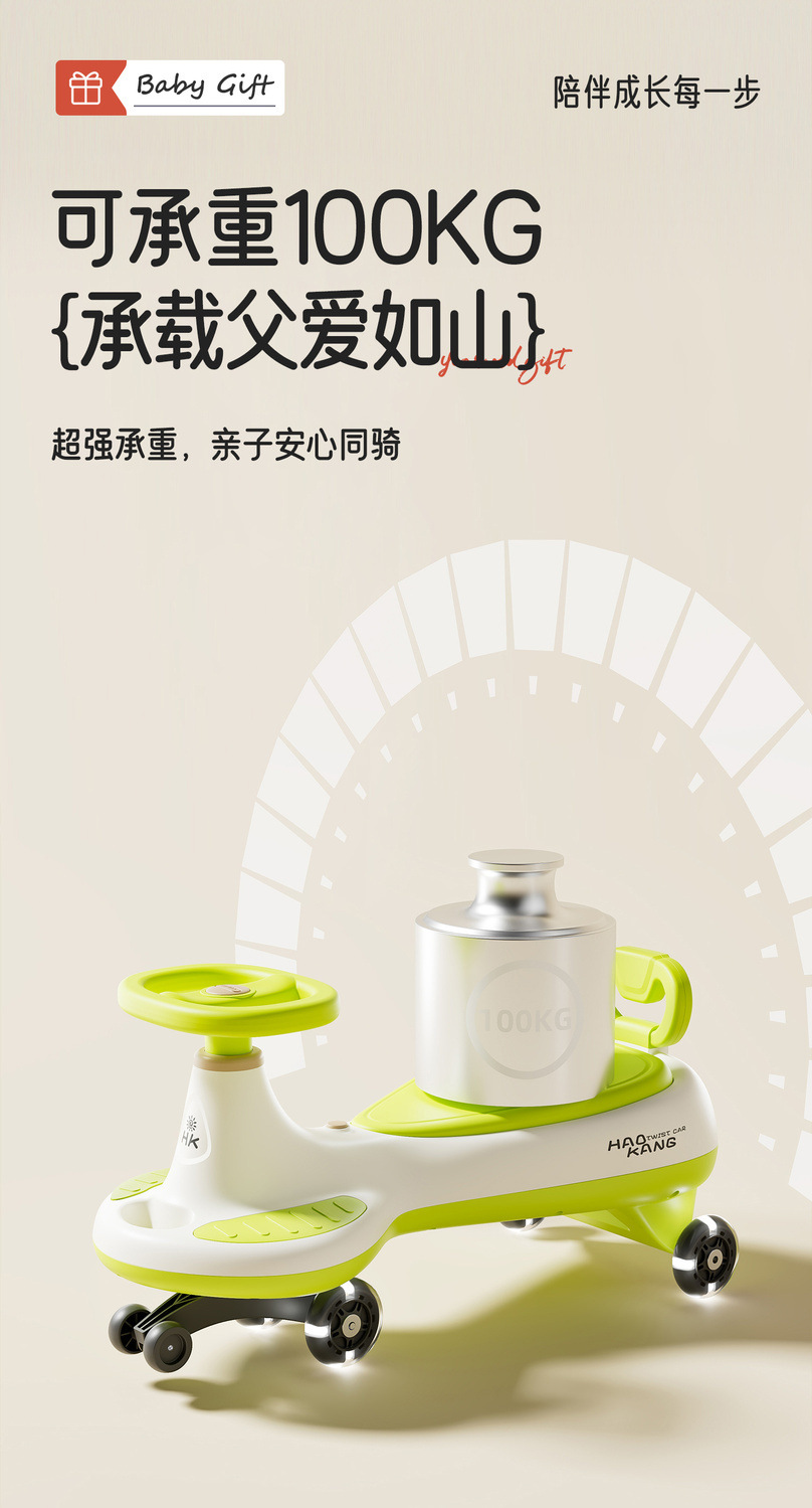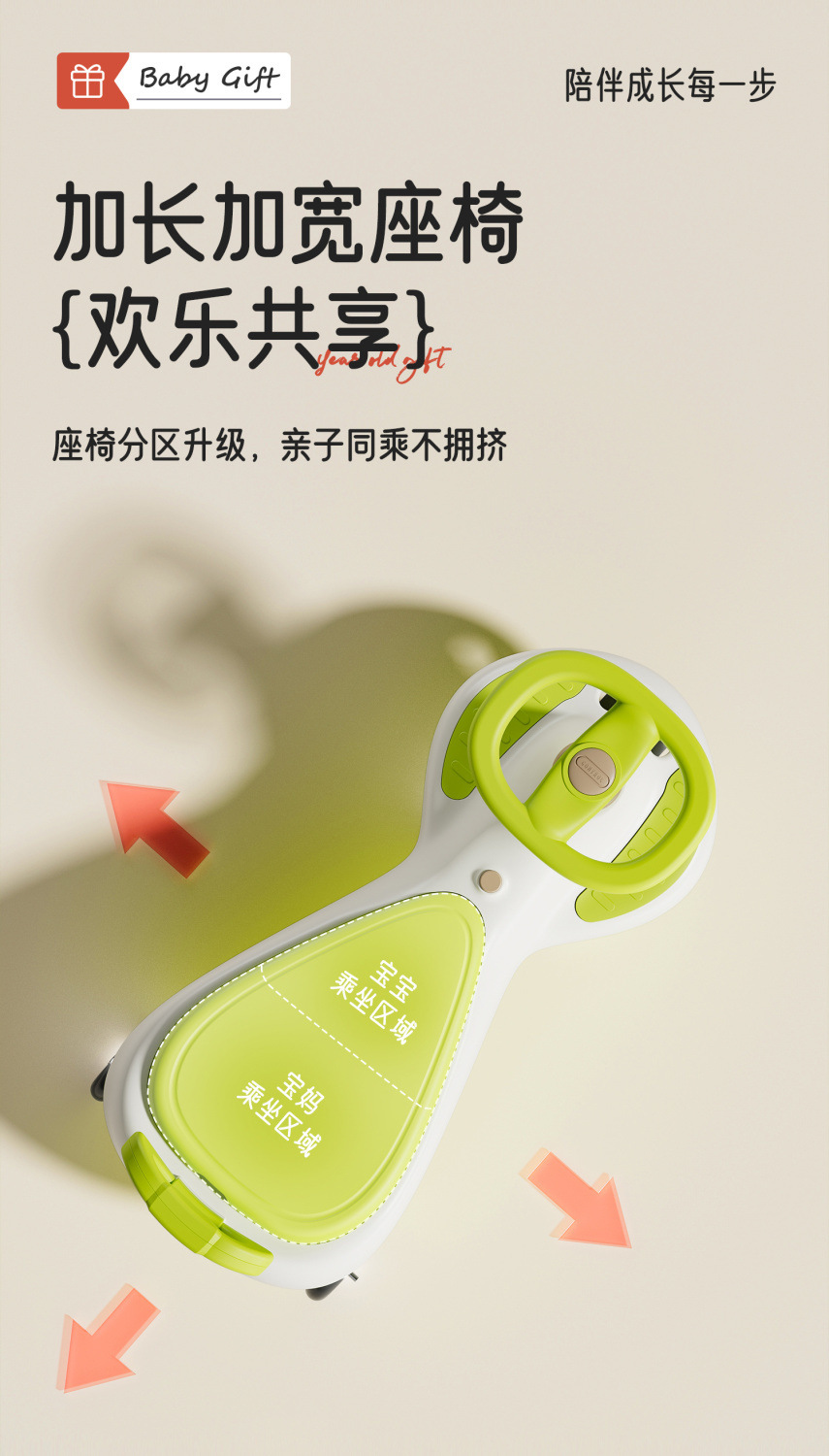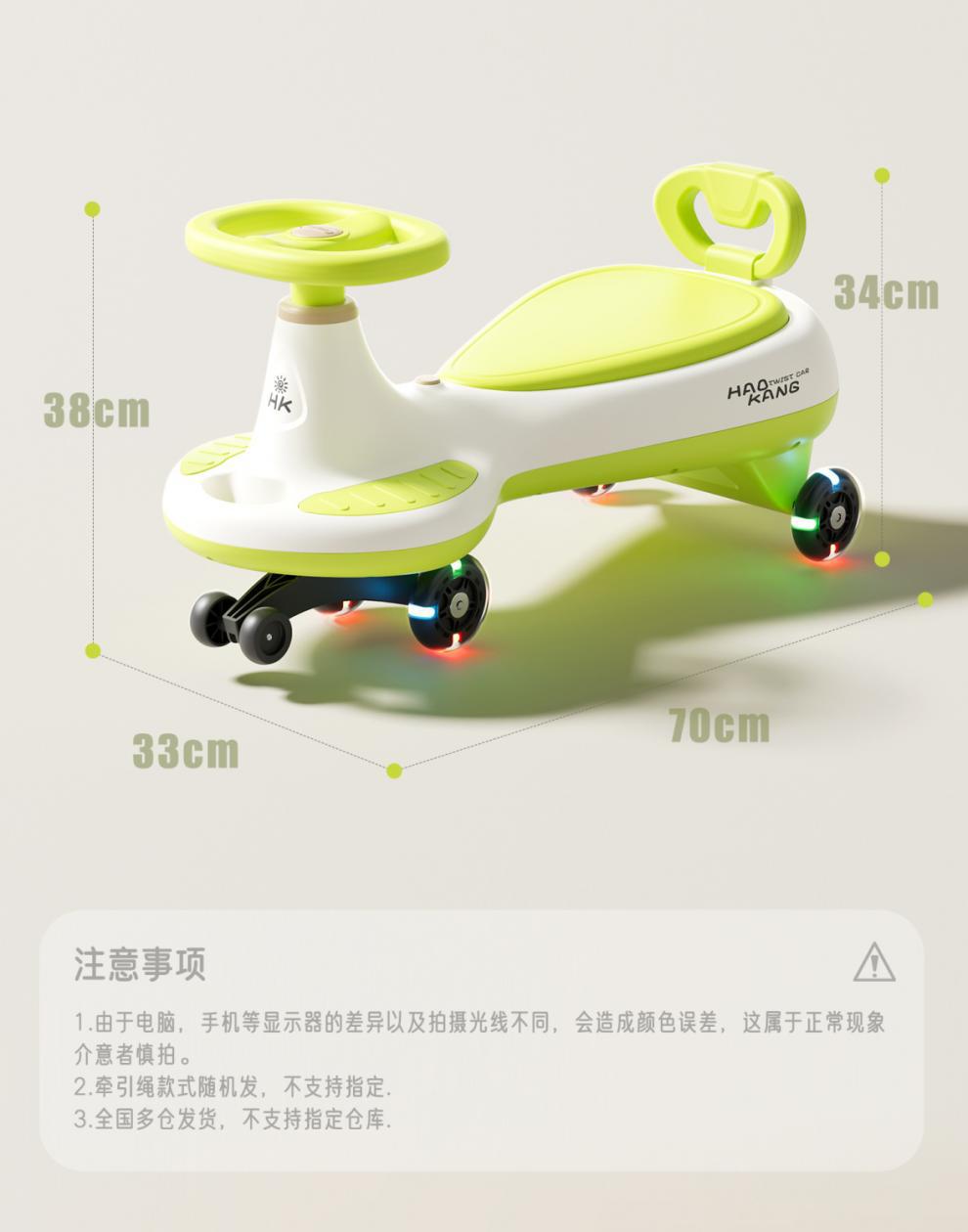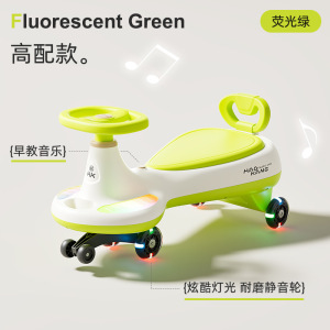 荧光绿【亲子同乘】牵引绳+加大车身-高配版+灯光音乐+静音闪光轮+载重200斤