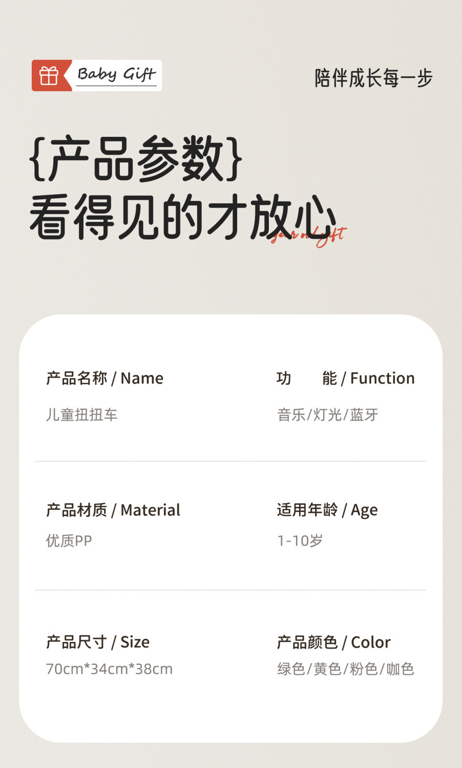 焦糖咖【亲子同乘】牵引绳 +加大车身-无灯光音乐+无礼包+普通塑料轮+载重50斤
