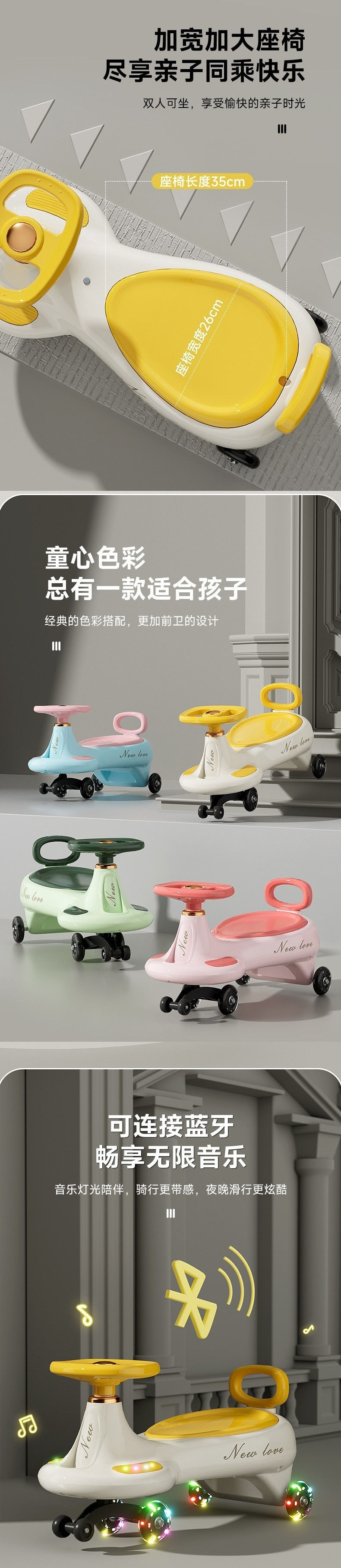活力黄+音乐灯光+靠背+静音闪光轮-经典款*静音彩轮*加大车身*承重280斤