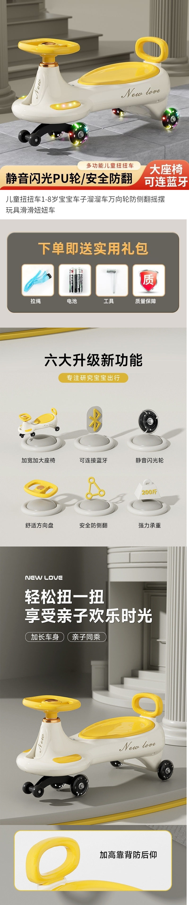 商品名称:儿童扭扭车1-8岁宝宝车子溜溜车万向轮防侧翻摇摆玩具滑行扭扭车