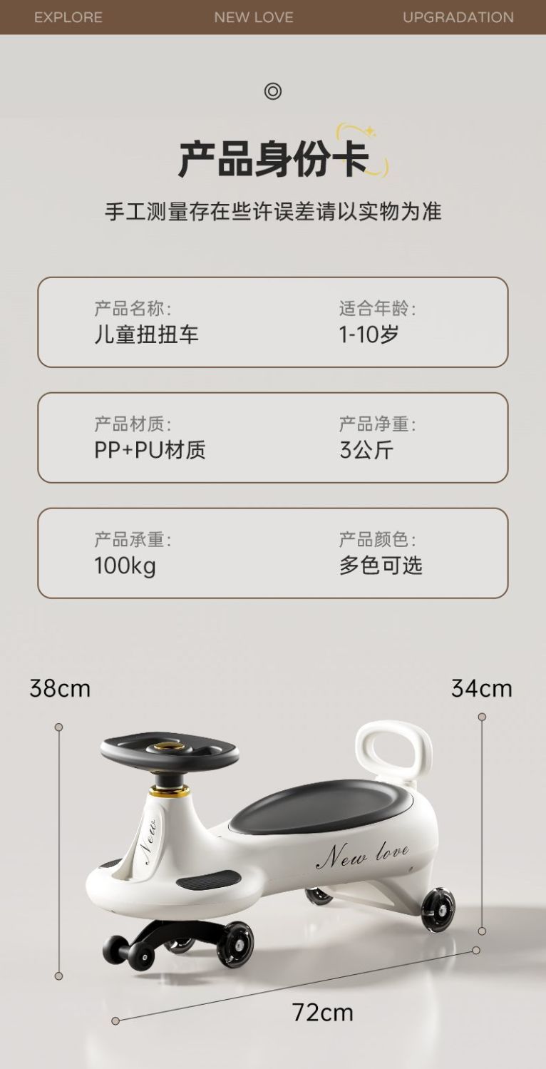 商品名称:儿童扭扭车-岁防侧翻摇摆玩具滑行宝宝车子万向轮溜溜车