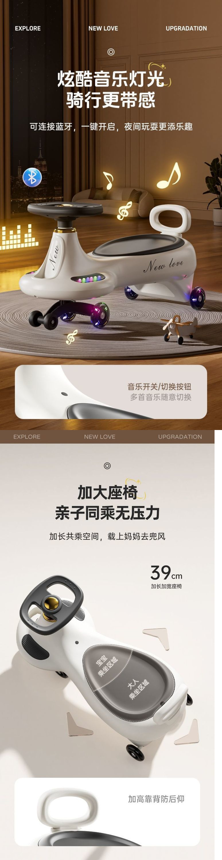 黄【亲子同乘】牵引绳+加大车身承重280斤#-旗舰款【音乐灯光】静音彩轮*加长座椅*大礼*