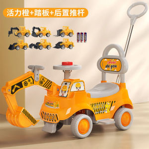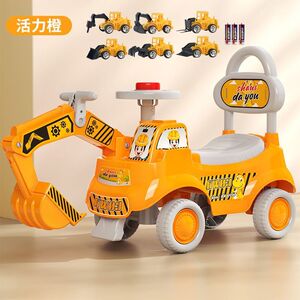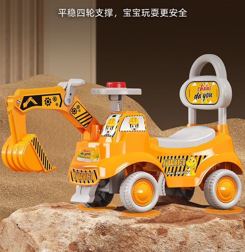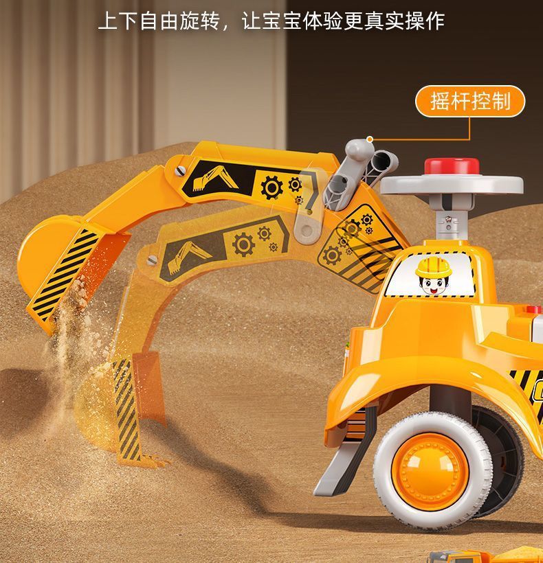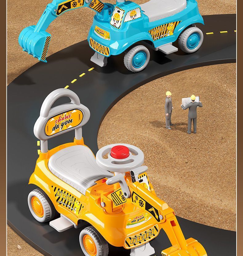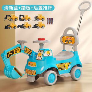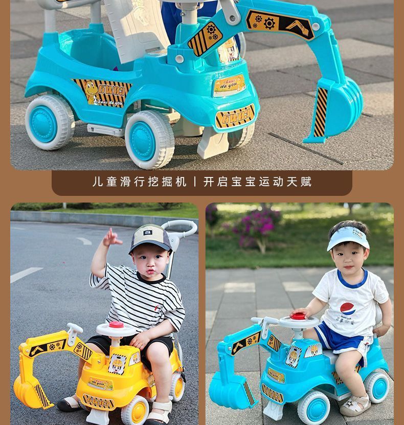 儿童挖掘机可坐人推把男孩挖土机工程车宝宝玩具车滑行溜溜扭扭车